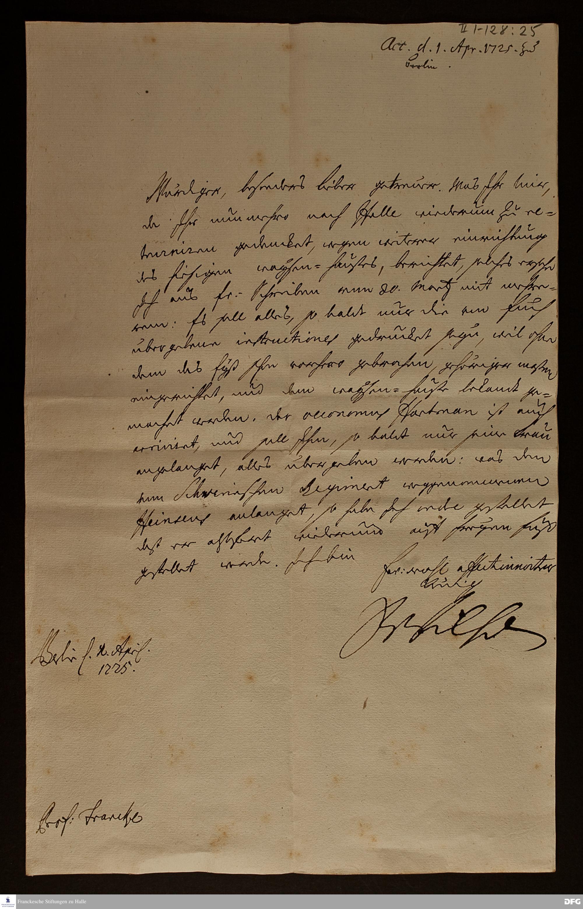 Brief von Friedrich Wilhelm I., König in Preußen, an August Hermann Francke.