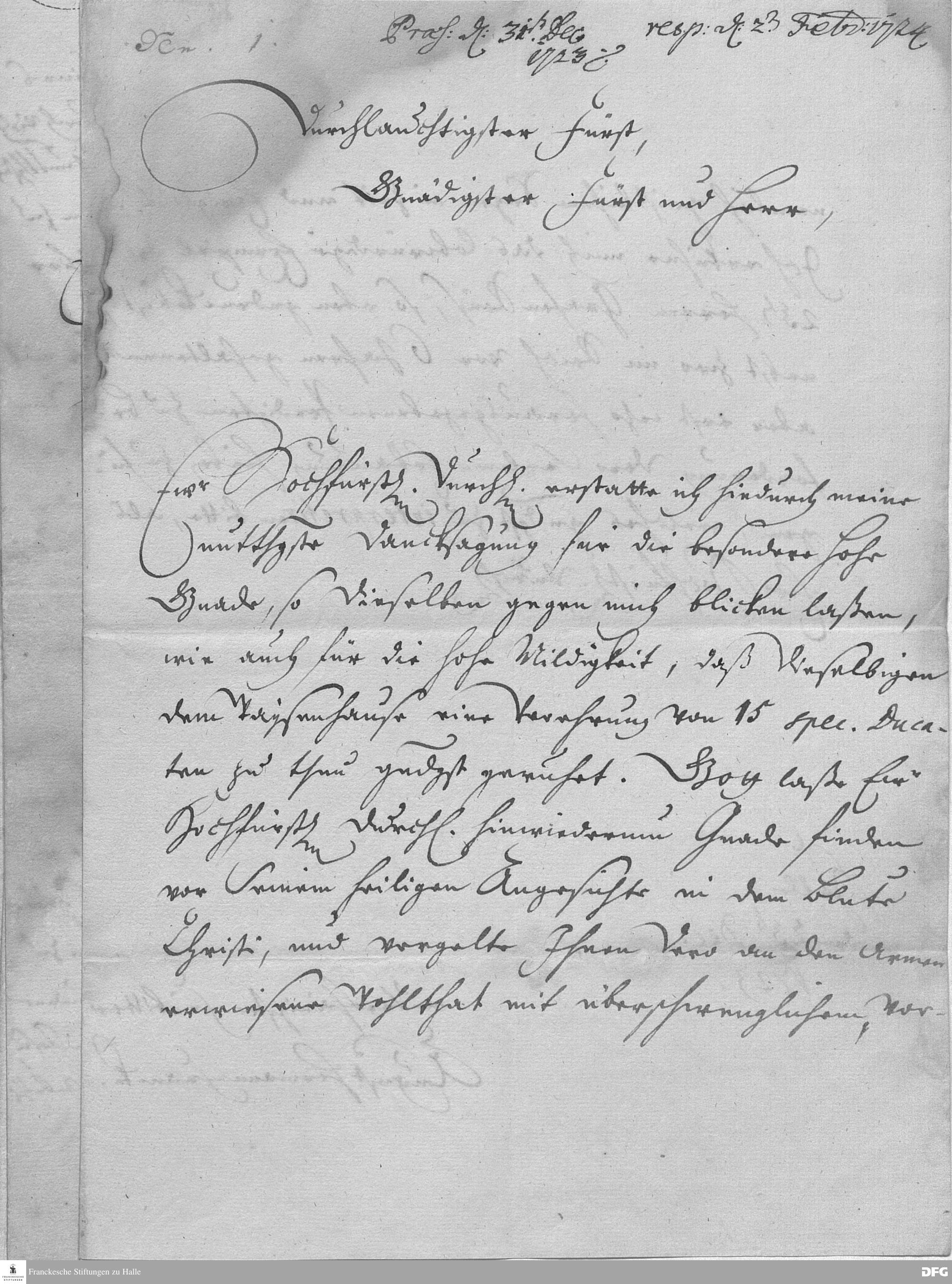 Brief von August Hermann Francke an Georg Albrecht von Ostfriesland.
