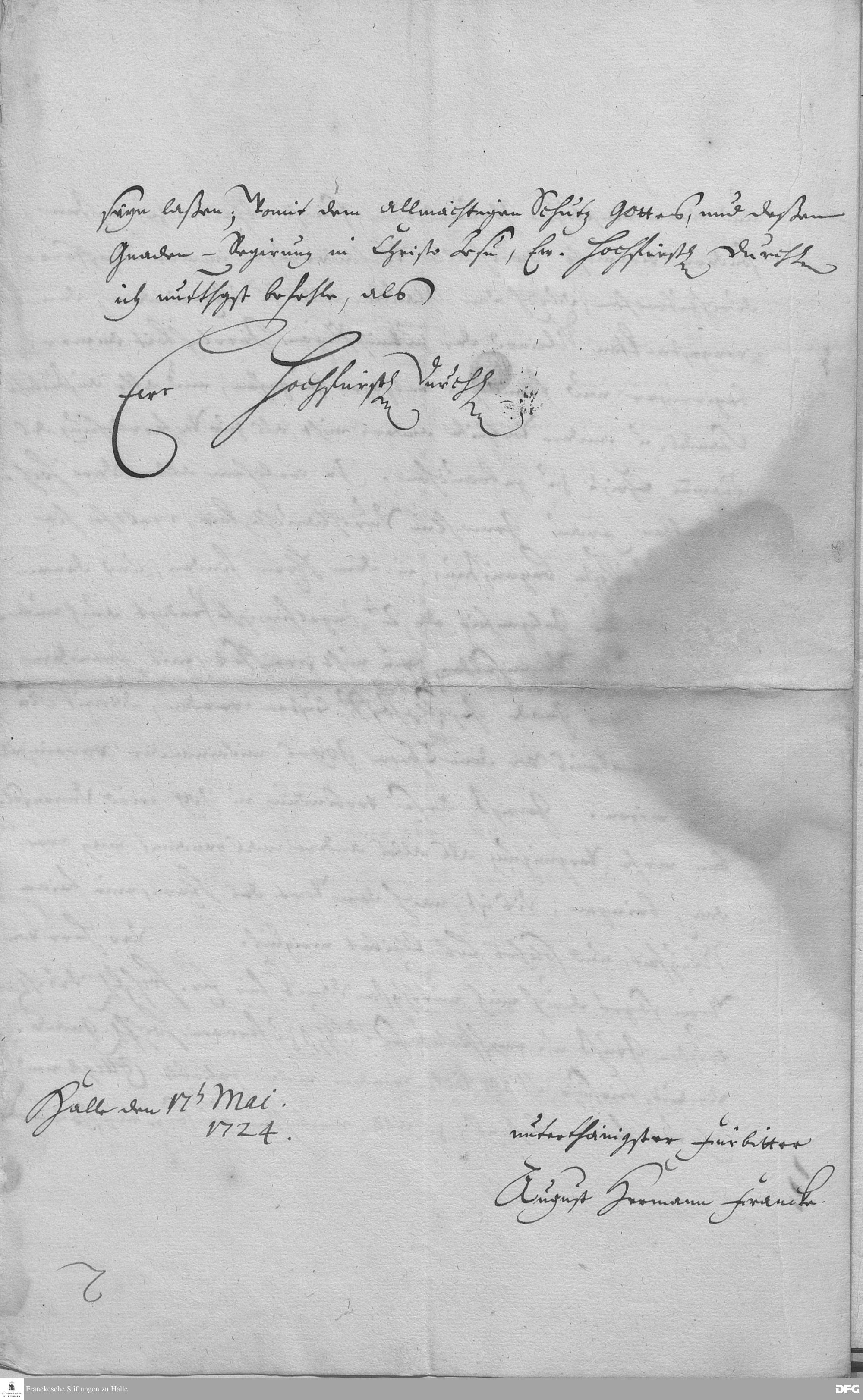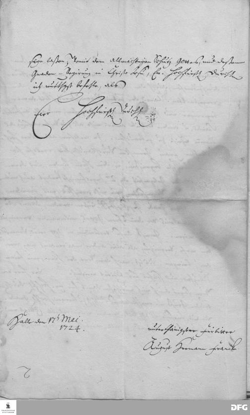 Brief von August Hermann Francke an Georg Albrecht von Ostfriesland.