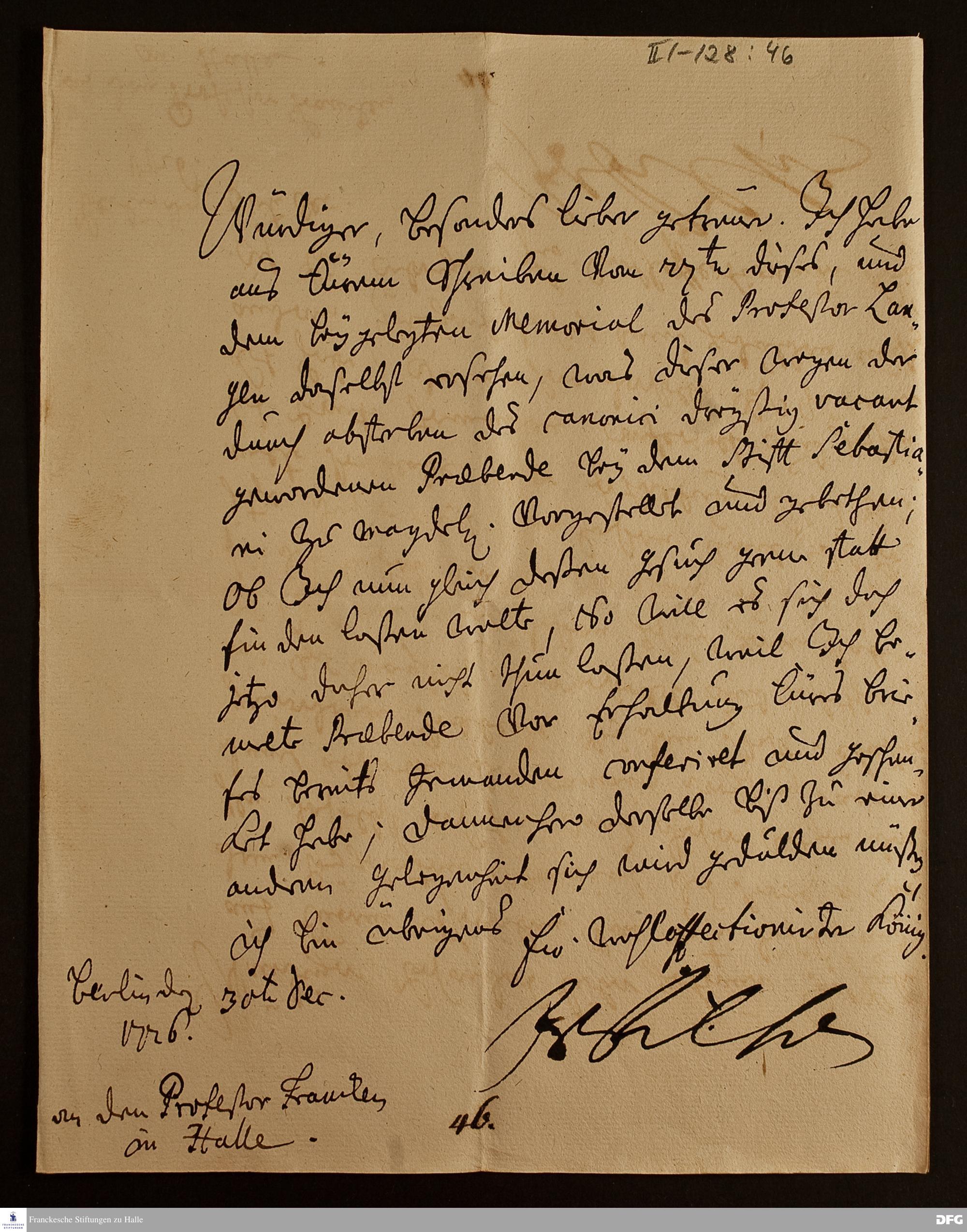 Brief von Friedrich Wilhelm I., König in Preußen, an August Hermann Francke.