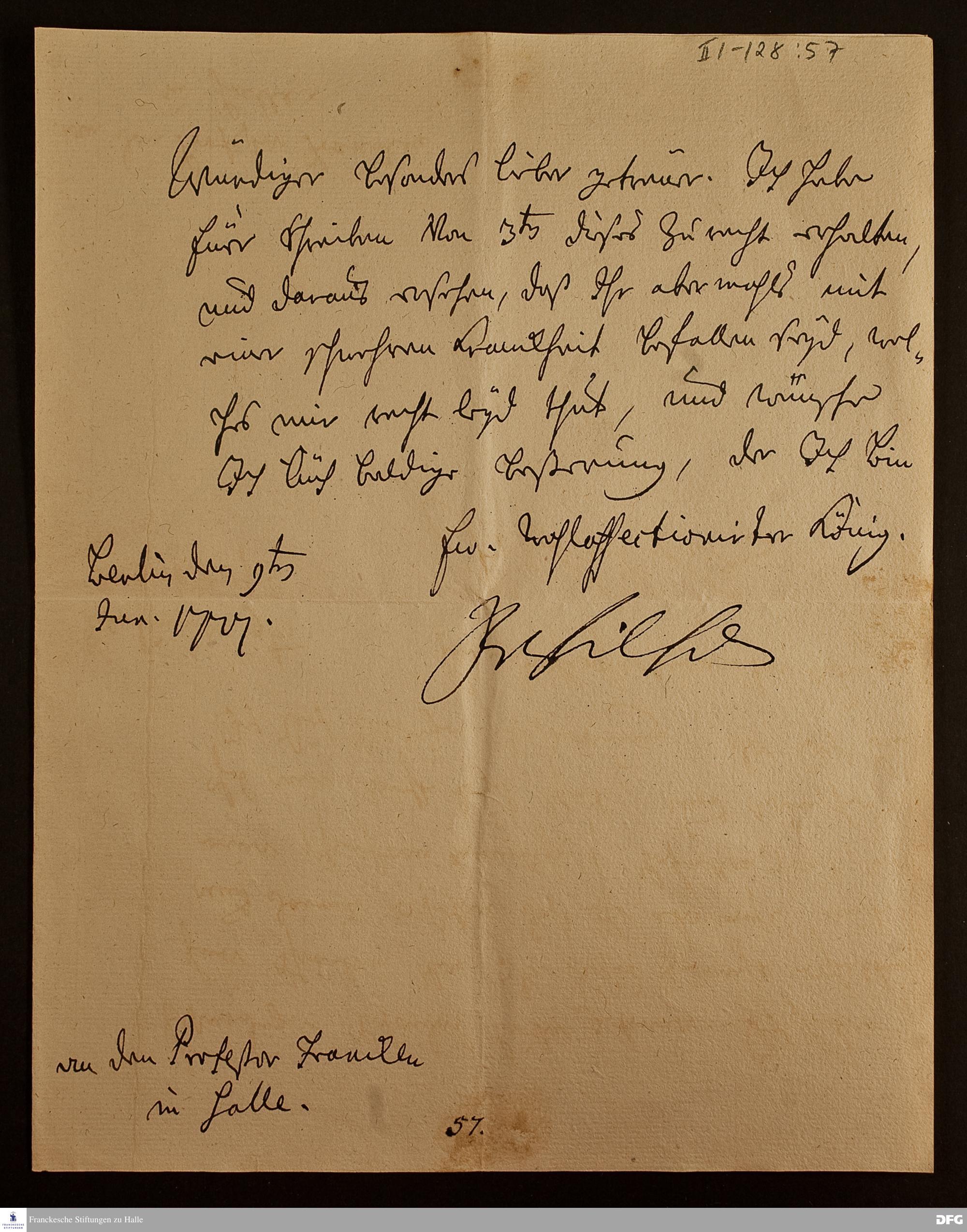 Brief von Friedrich Wilhelm I., König in Preußen, an August Hermann Francke.