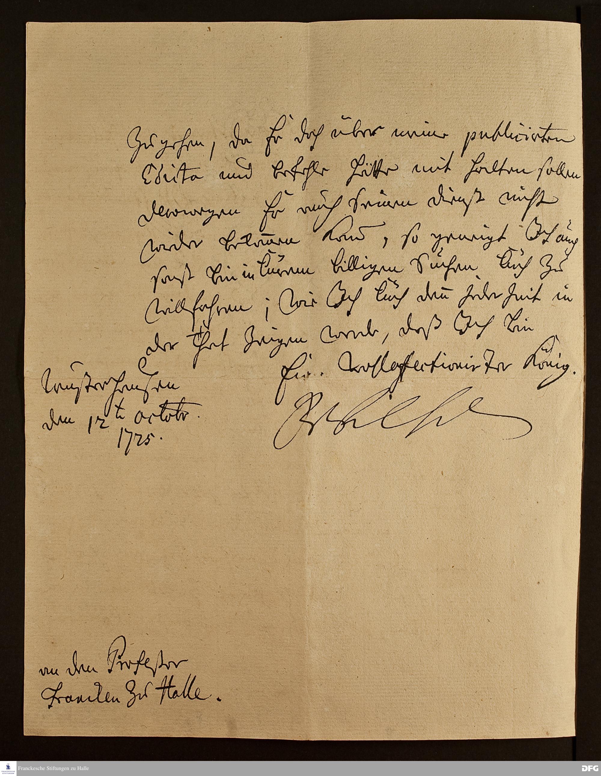 Brief von Friedrich Wilhelm I., König in Preußen, an August Hermann Francke.
