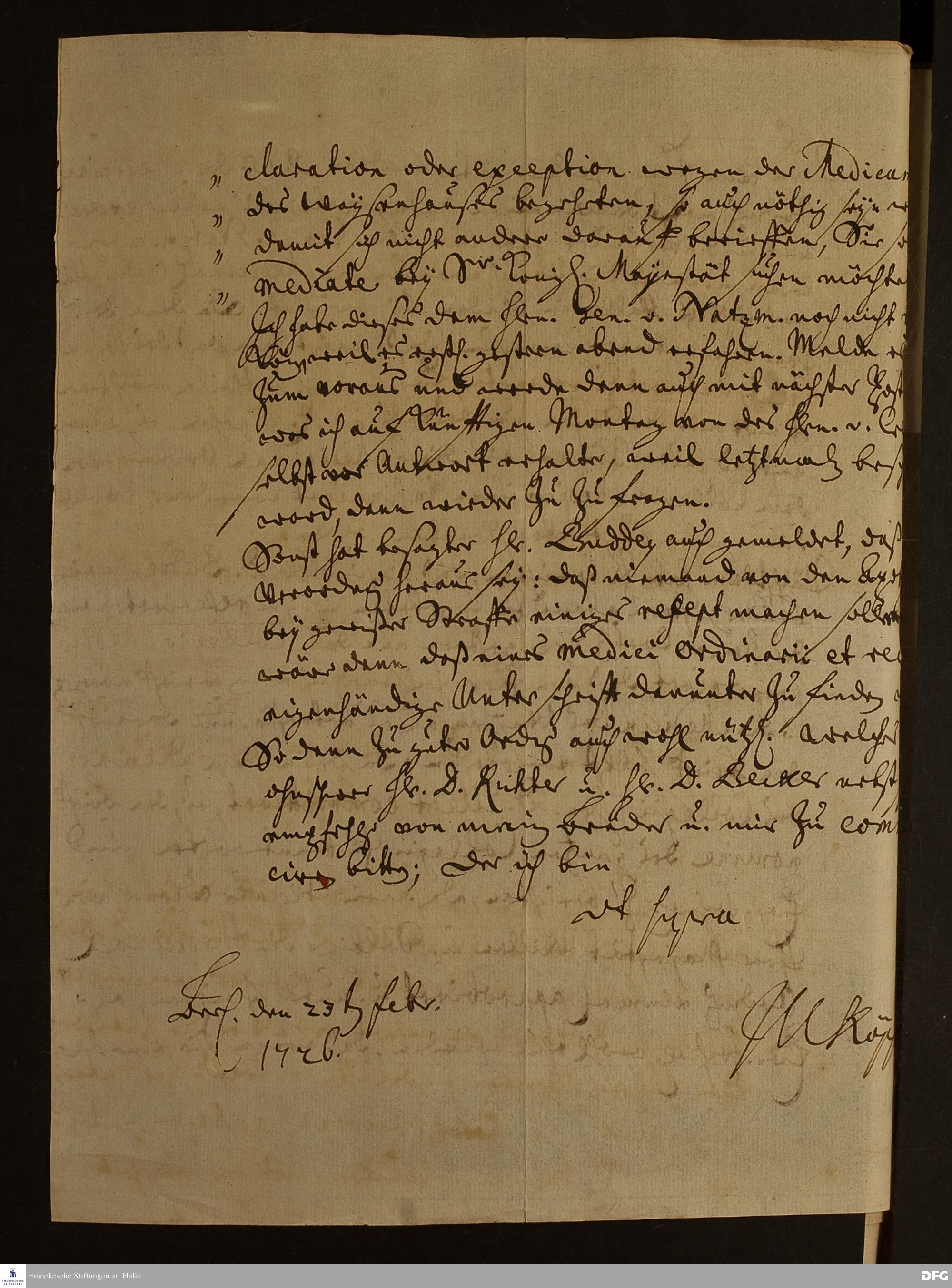 Brief von Johann Ulrich Christian Köppen an [August Hermann Francke].