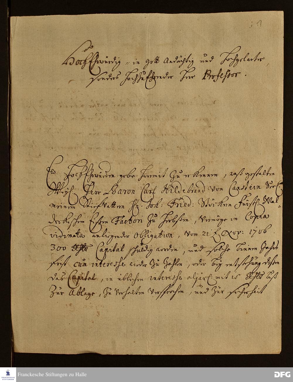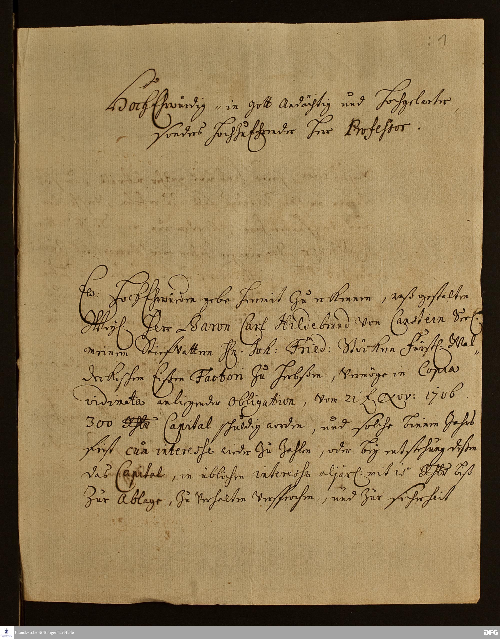Brief von Otto Friedrich Rissen an August Hermann Francke.