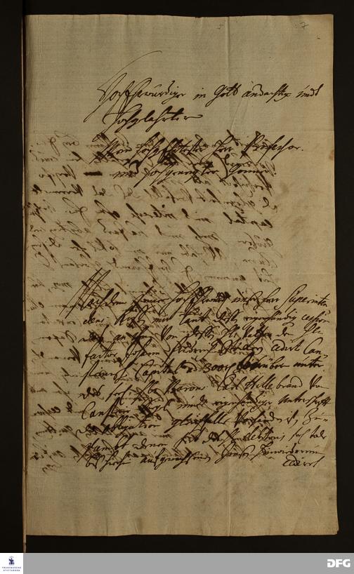 Brief von J. Wiegand an August Hermann Francke.