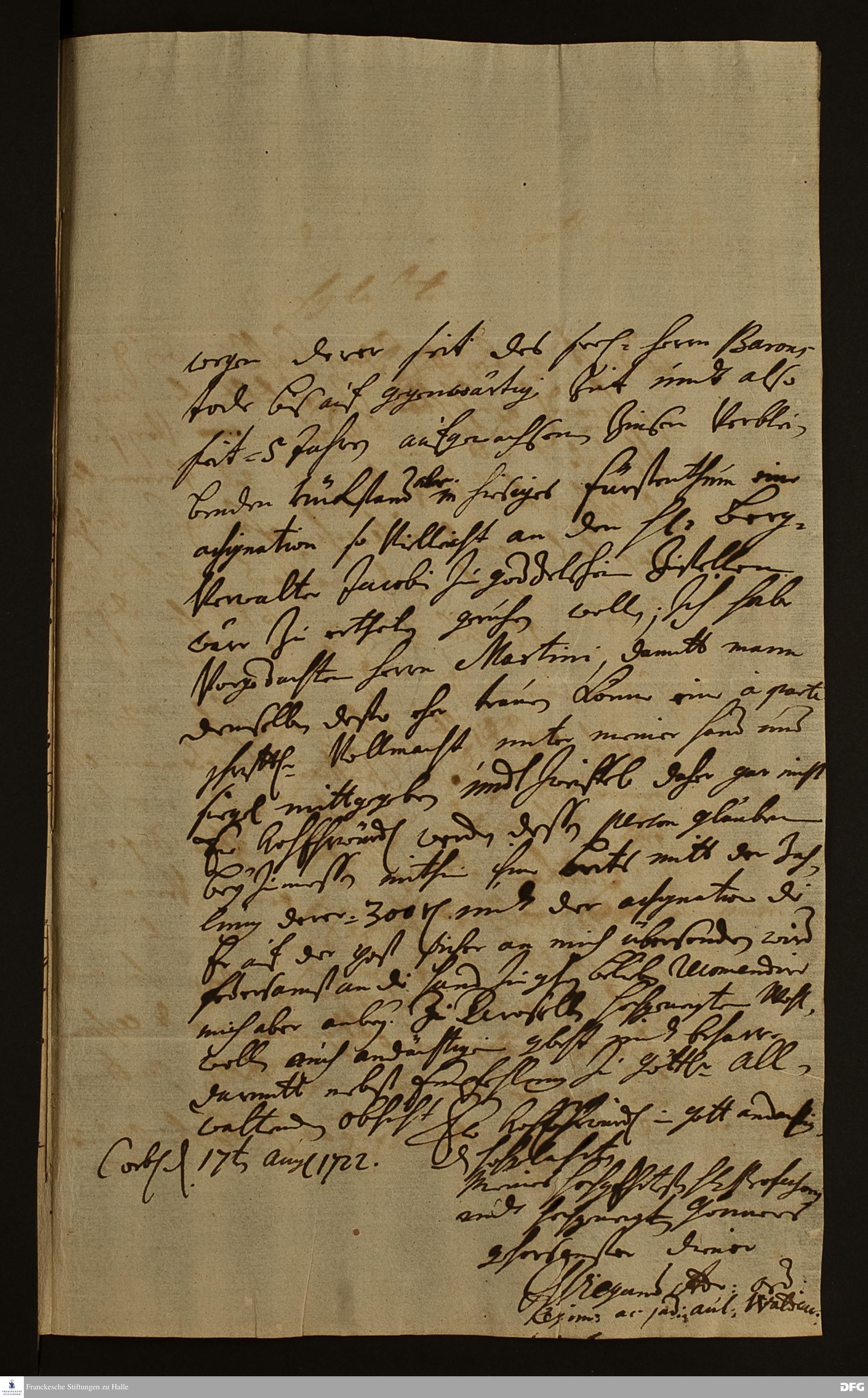 Brief von J. Wiegand an August Hermann Francke.