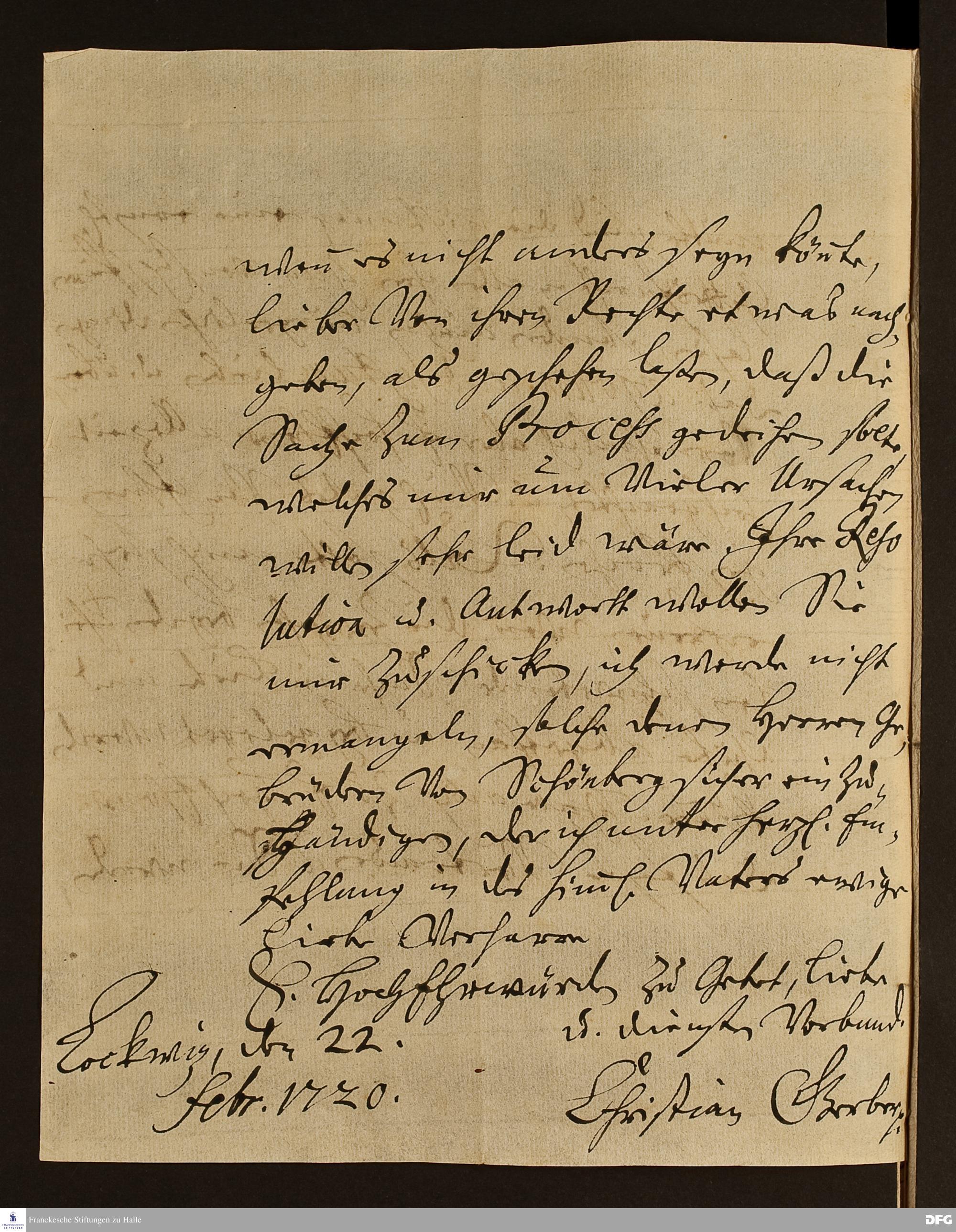 Brief von Christian Gerber an August Hermann Francke.