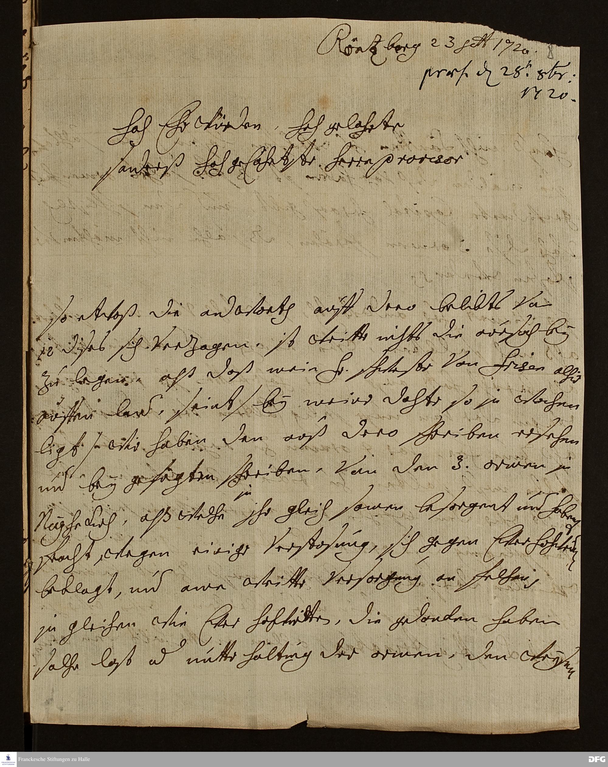 Brief von Margaretha Helena von Degenfeld an August Hermann Francke.