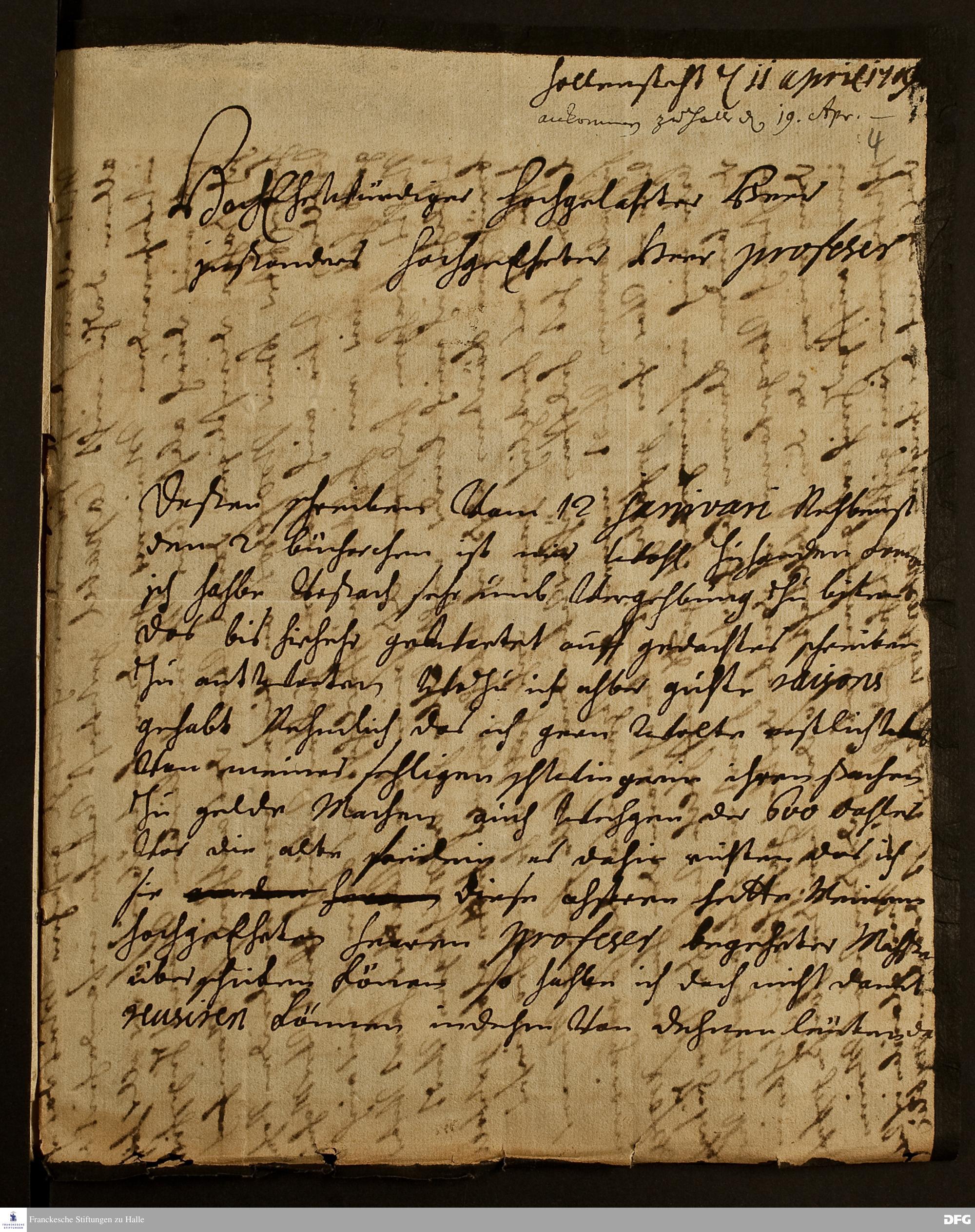 Brief von Louise Catharina von der Wense an August Hermann Francke.