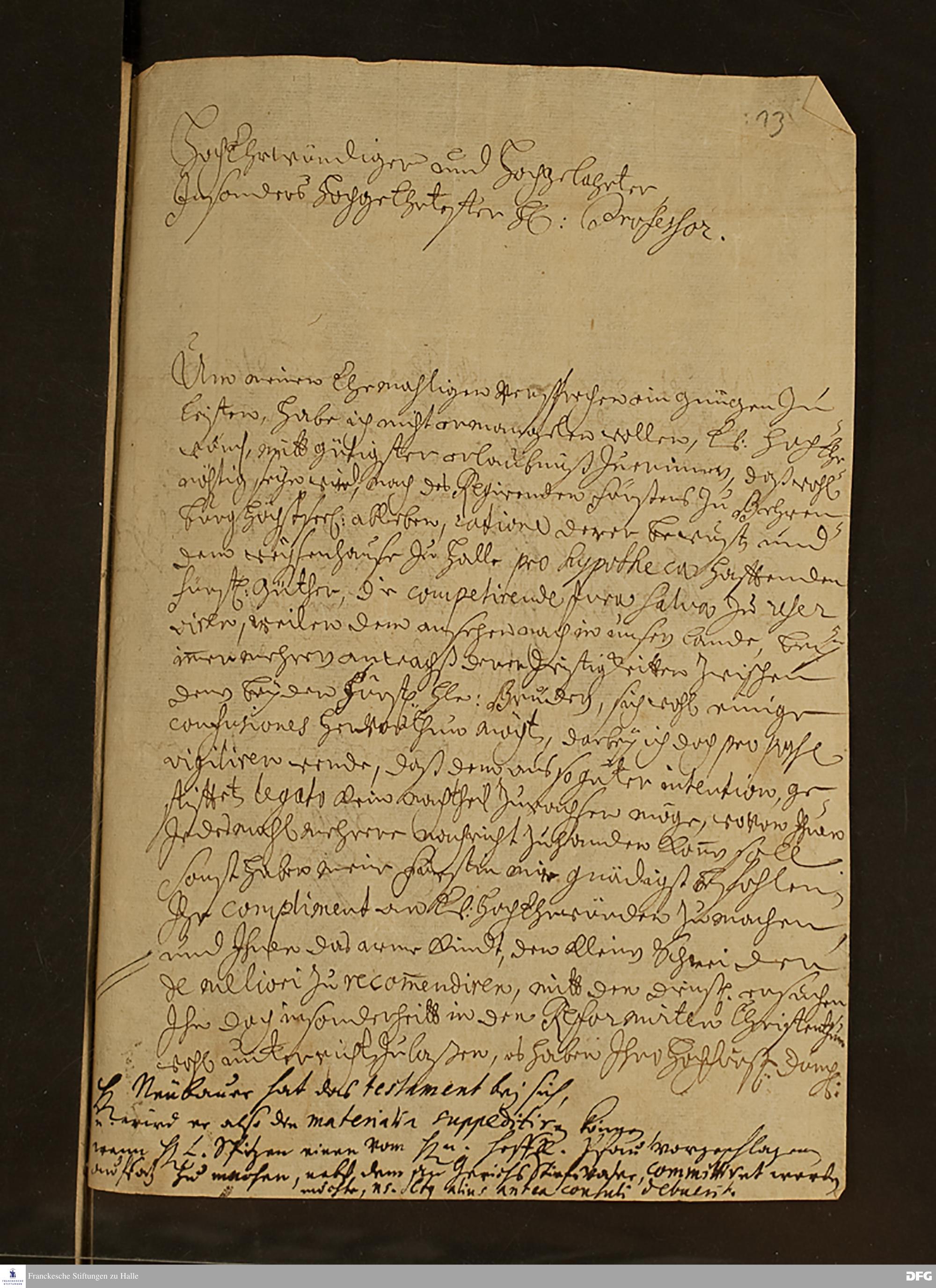 Brief von Friedrich Christian Pfau an August Hermann Francke.
