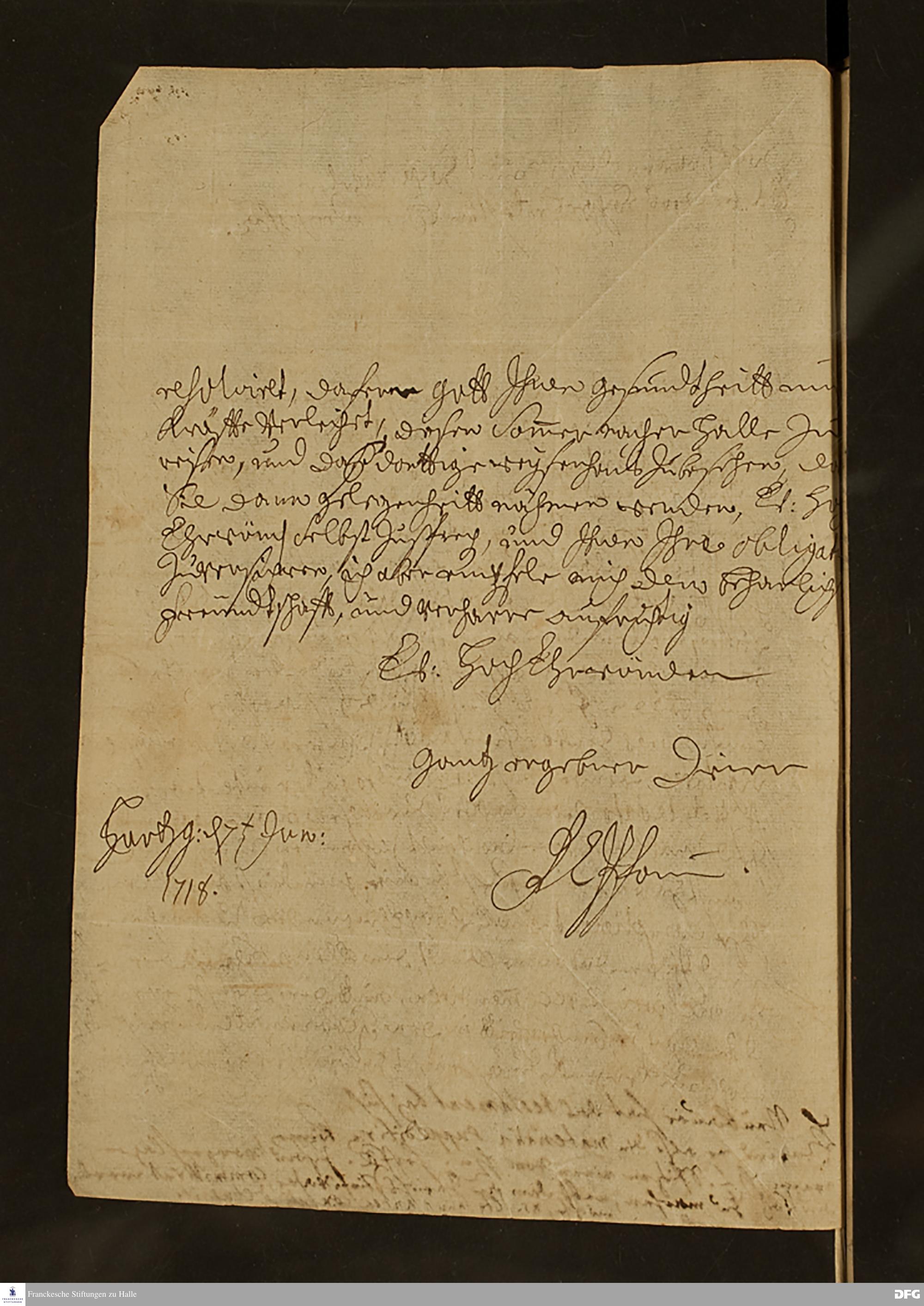 Brief von Friedrich Christian Pfau an August Hermann Francke.