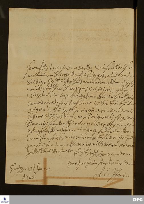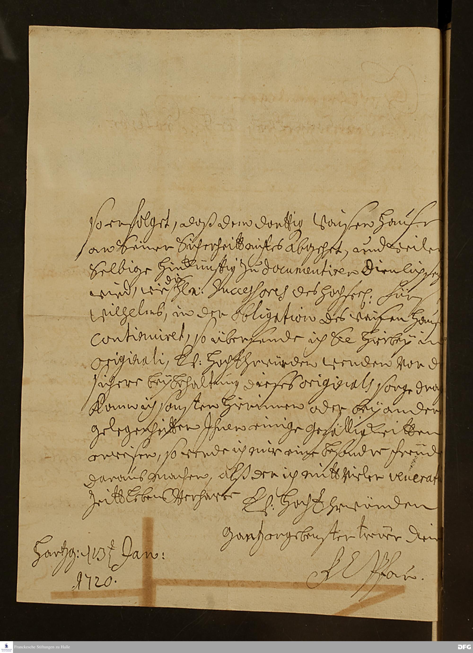 Brief von Friedrich Christian Pfau an August Hermann Francke.