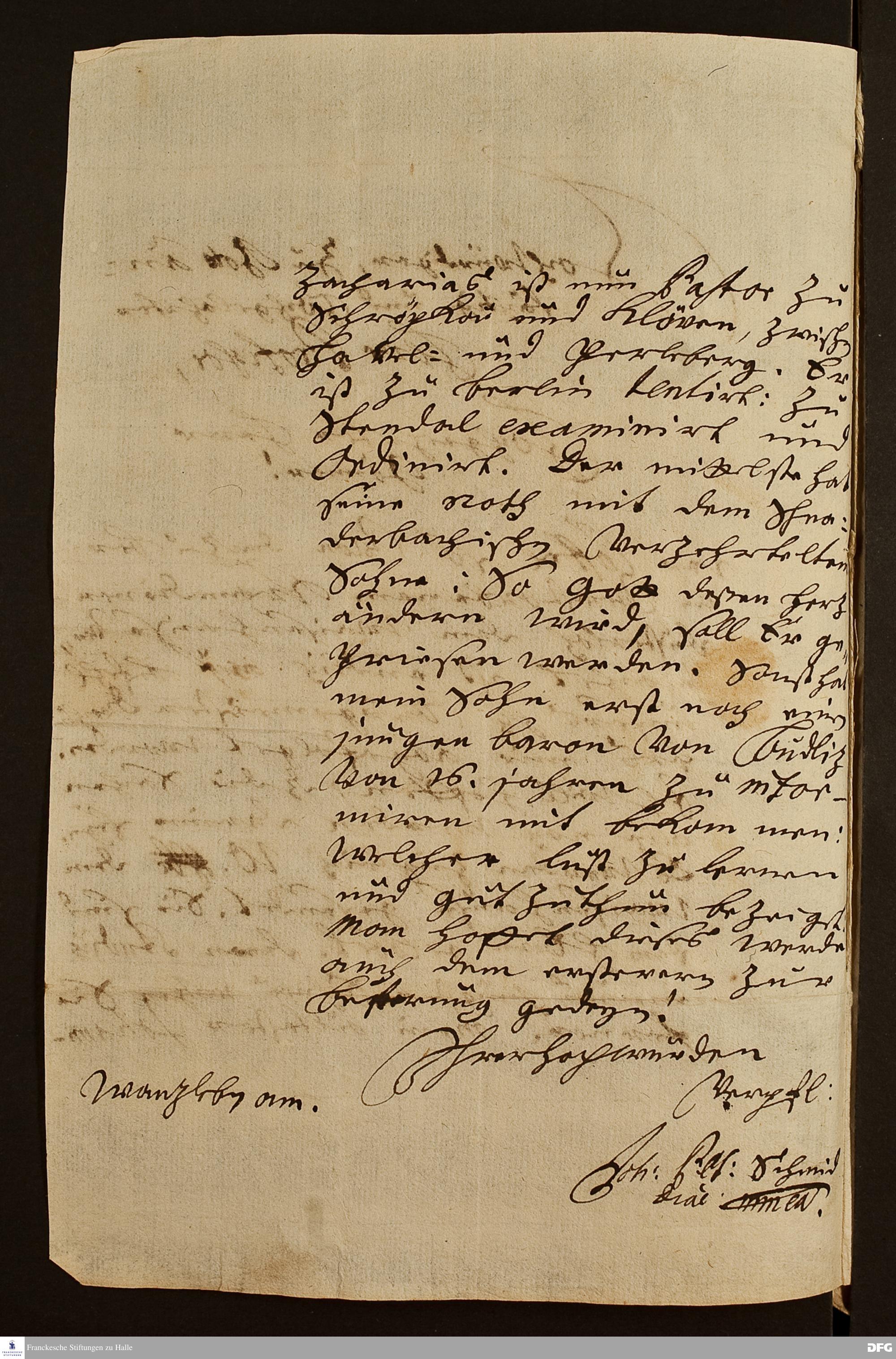 Brief von Johann Christoff Schmied an August Hermann Francke.