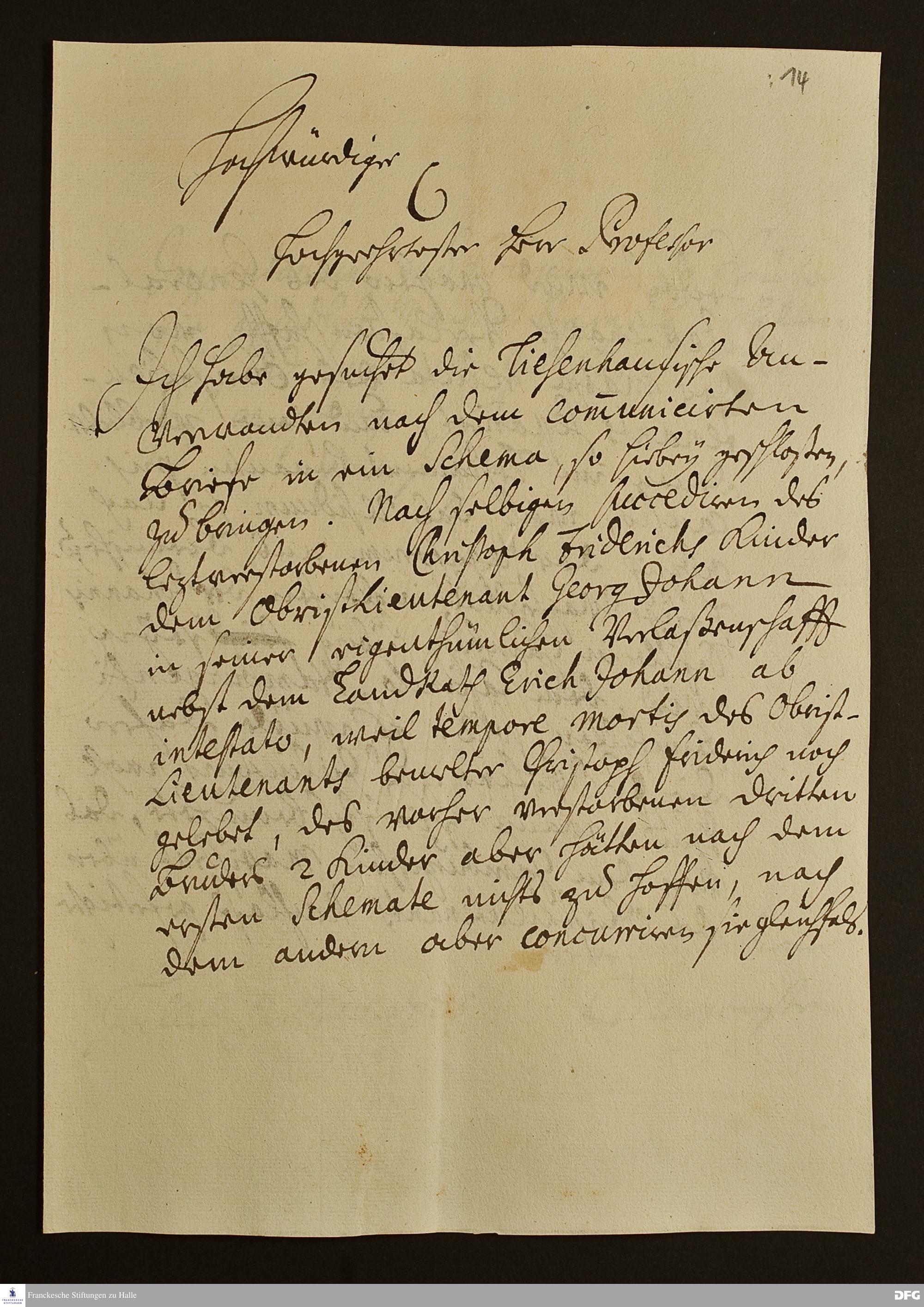 Briefes von [Simon] Morgenstern an [August Hermann Francke].