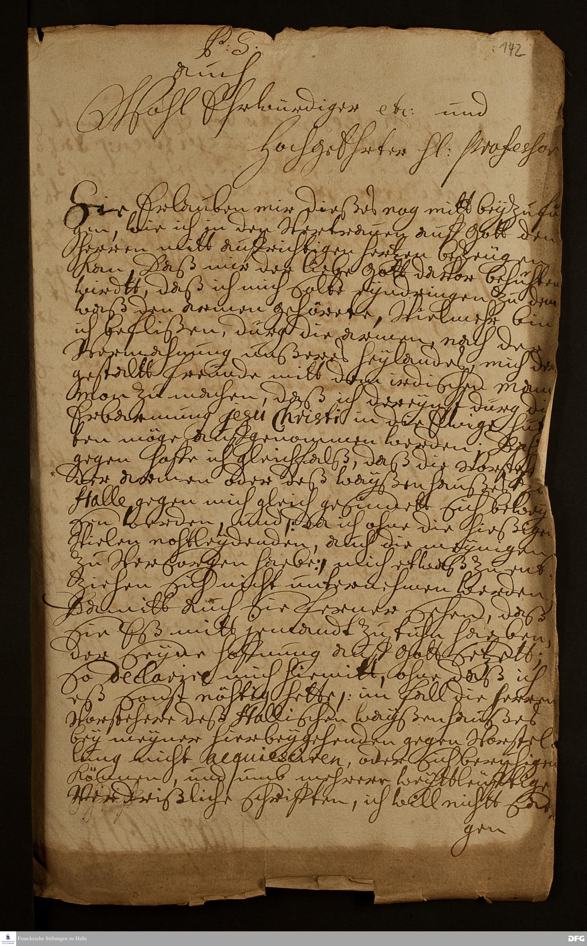 Brief von Rudolf Ferdinand zur Lipe-Biesterfeld an August Hermann Francke.