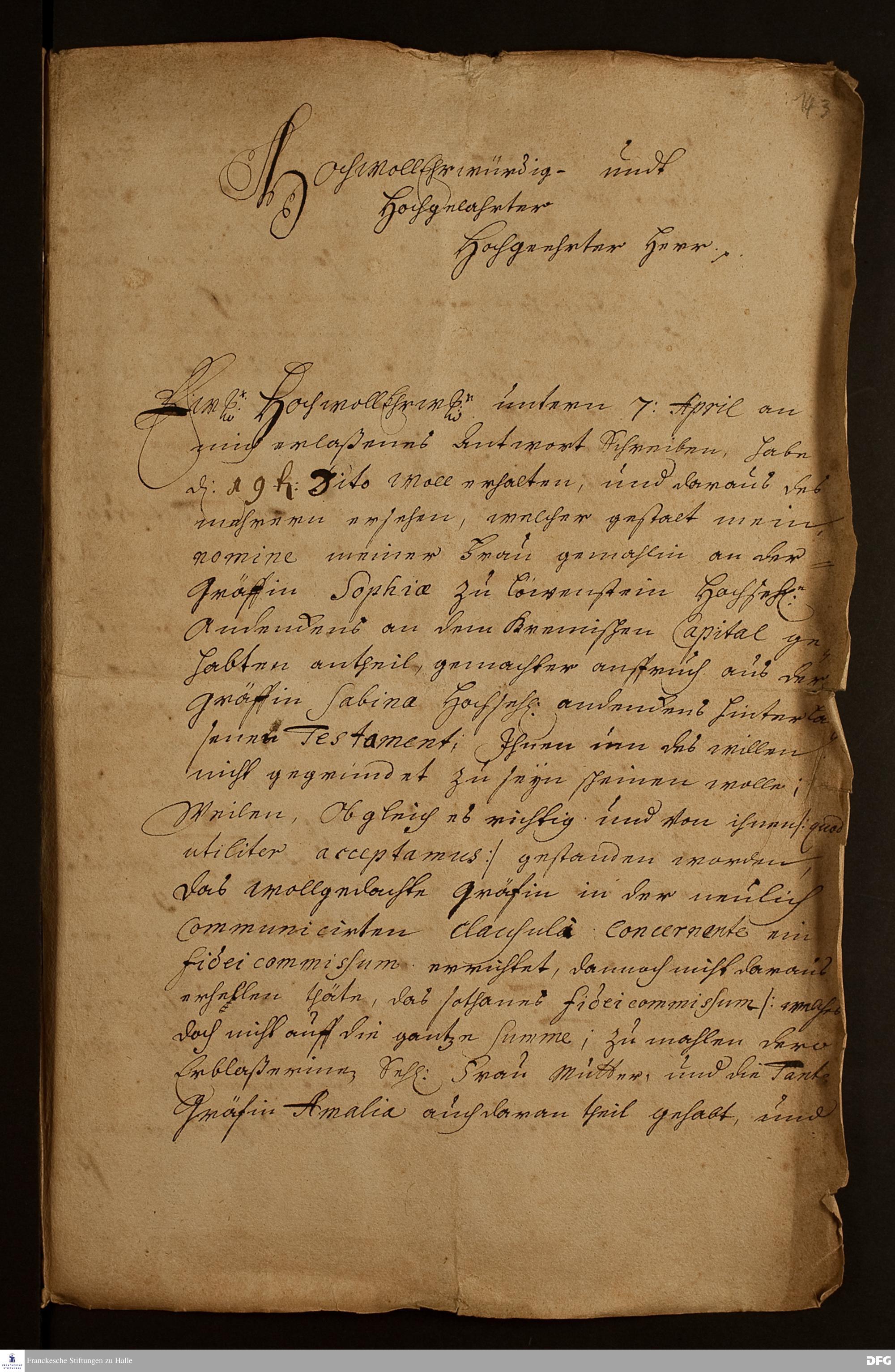 Brief von Rudolf Ferdinand zur Lipe-Biesterfeld an August Hermann Francke.