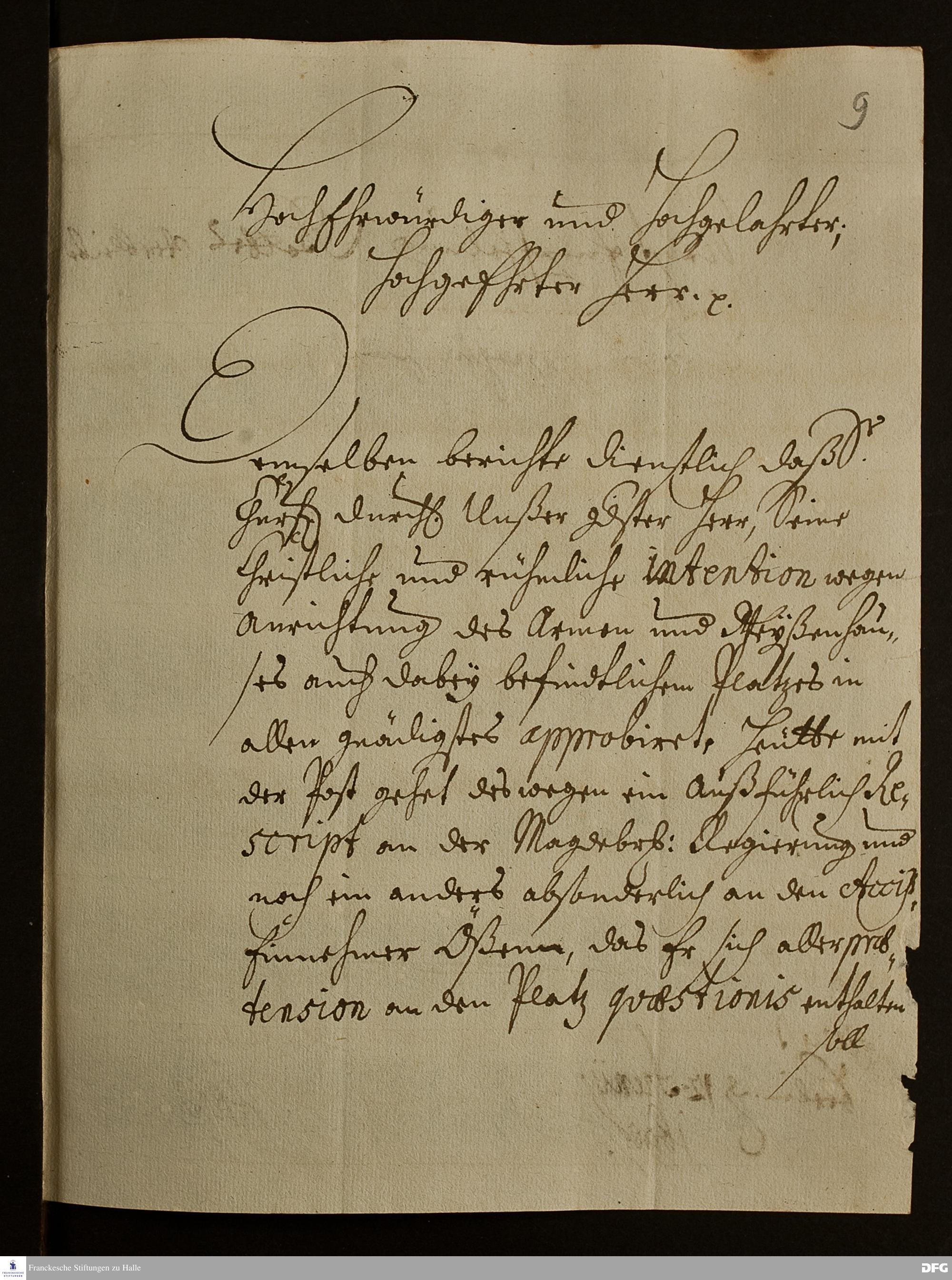 Brief von Johann Friedrich v. Rhetz an August Hermann Francke.