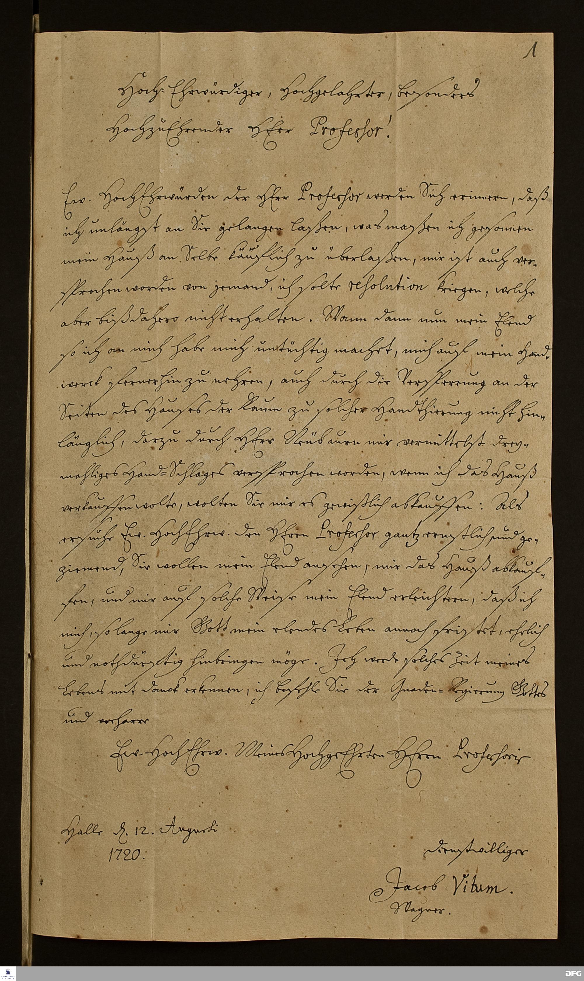 Brief von Jacob Vidum an August Hermann Francke.