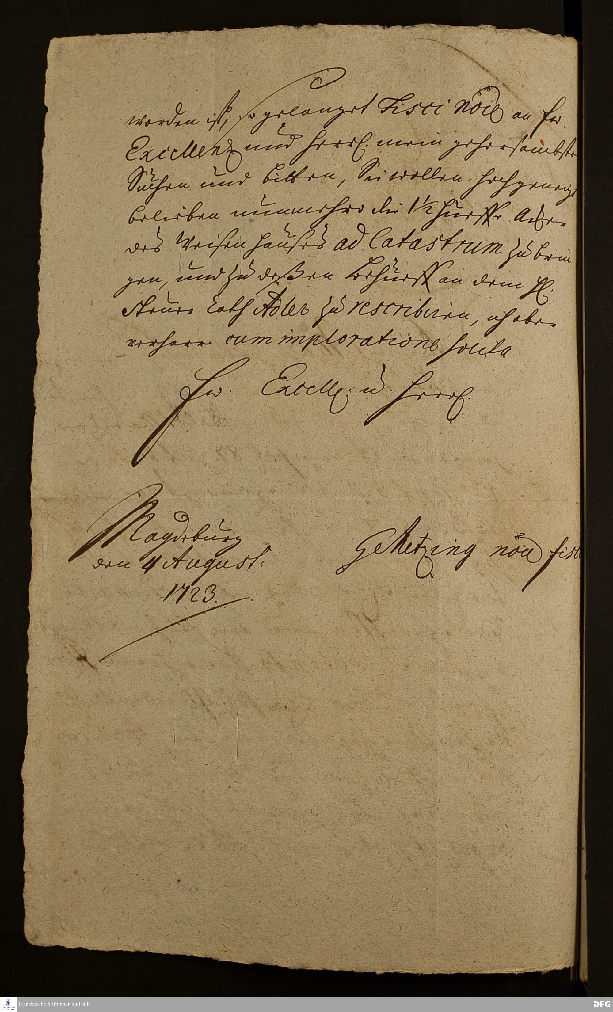 Brief der Kriegs- und Domänenkammer Magdeburg an August Hermann Francke.