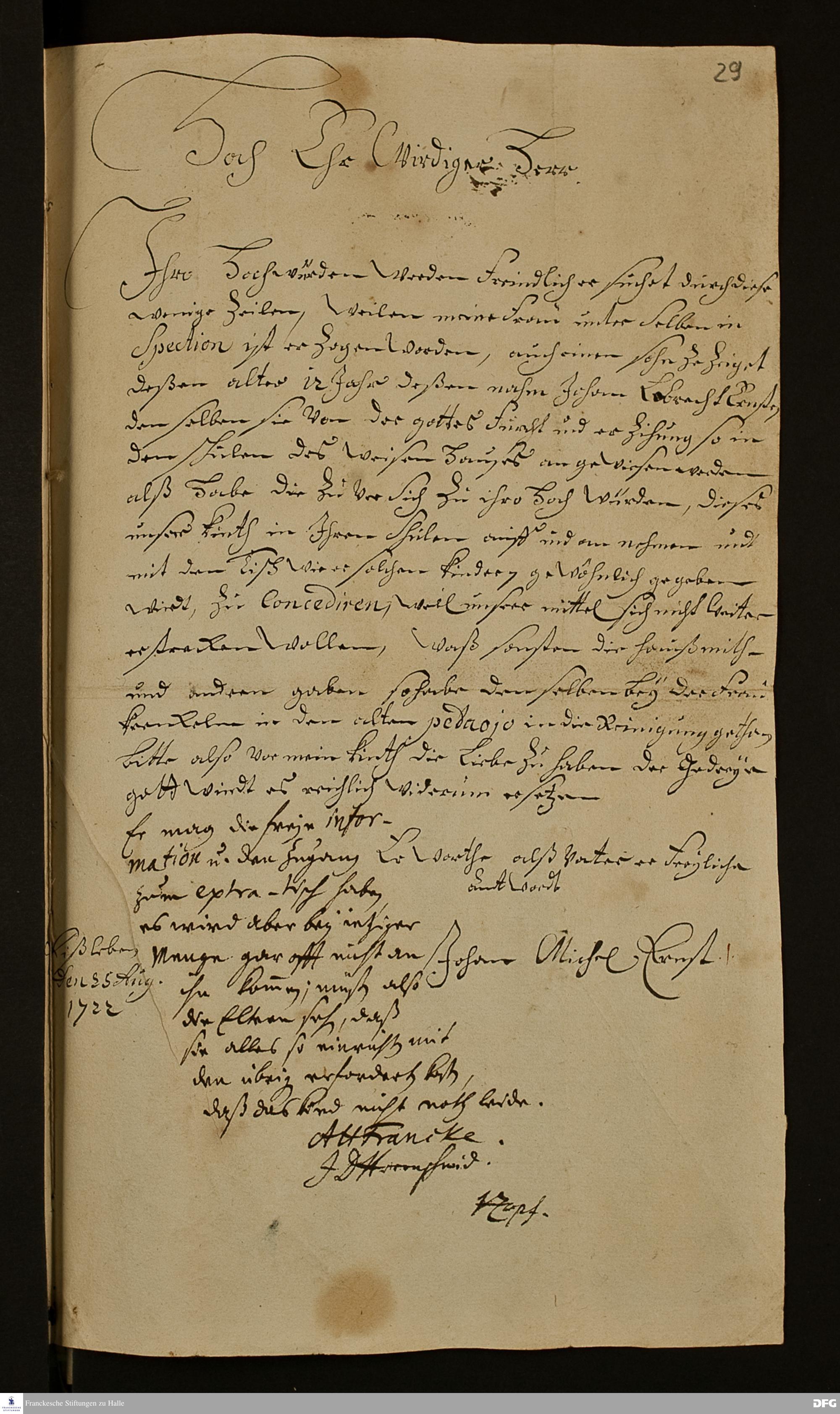 Brief von Johann Michel Ernst an August Hermann Francke.