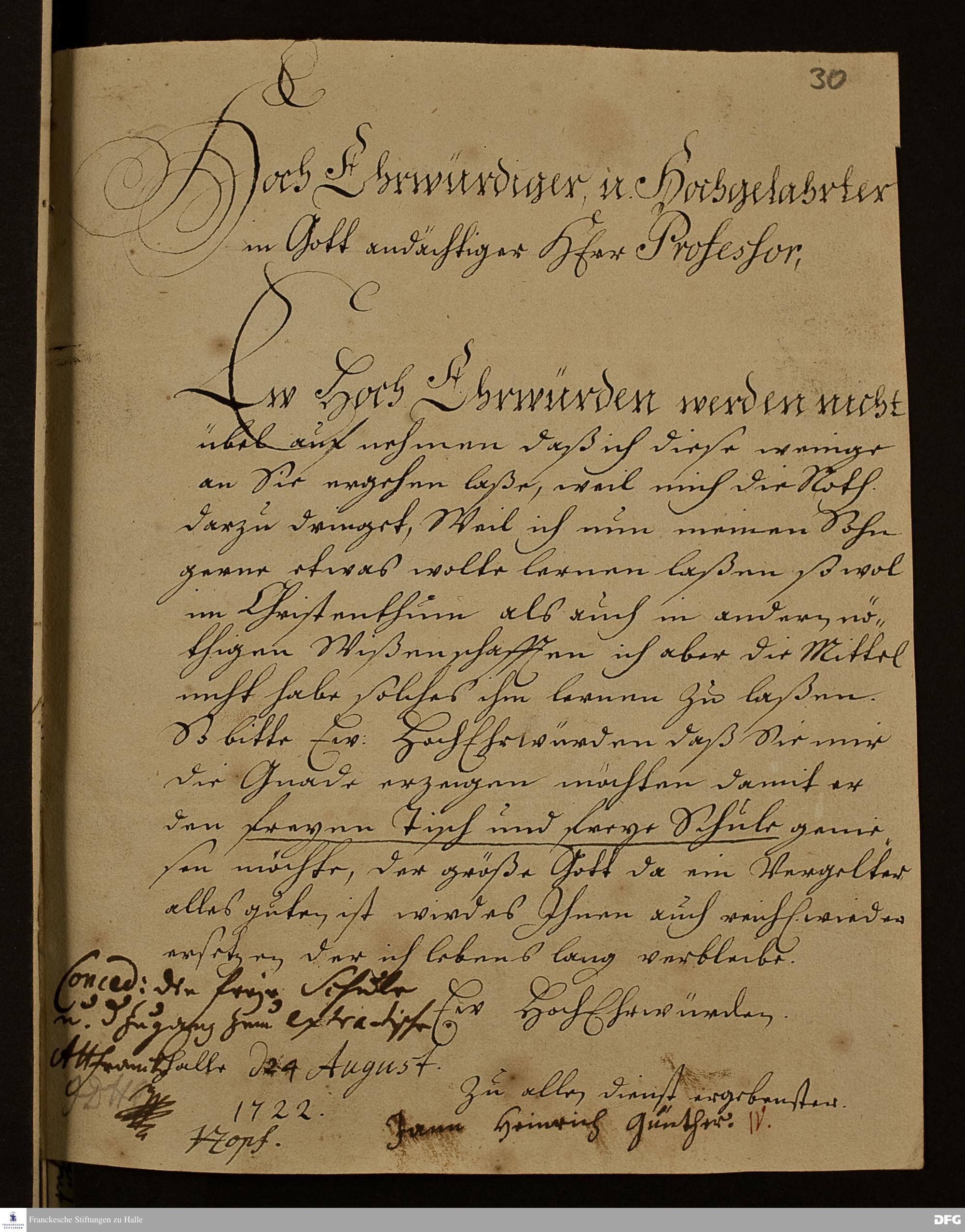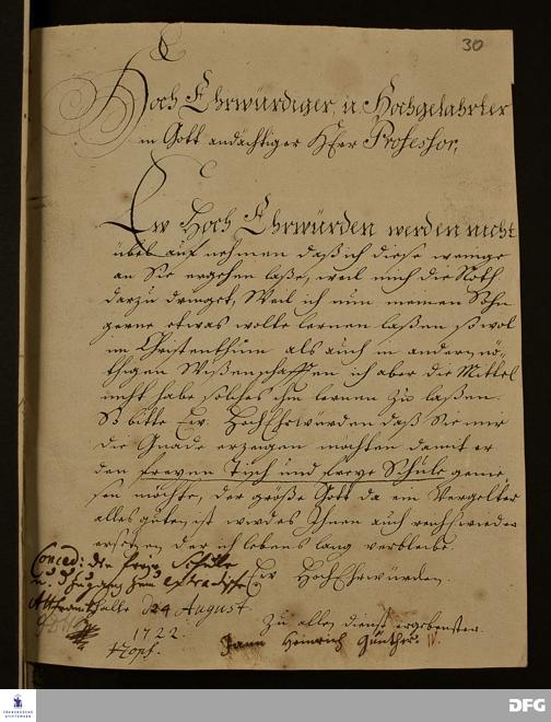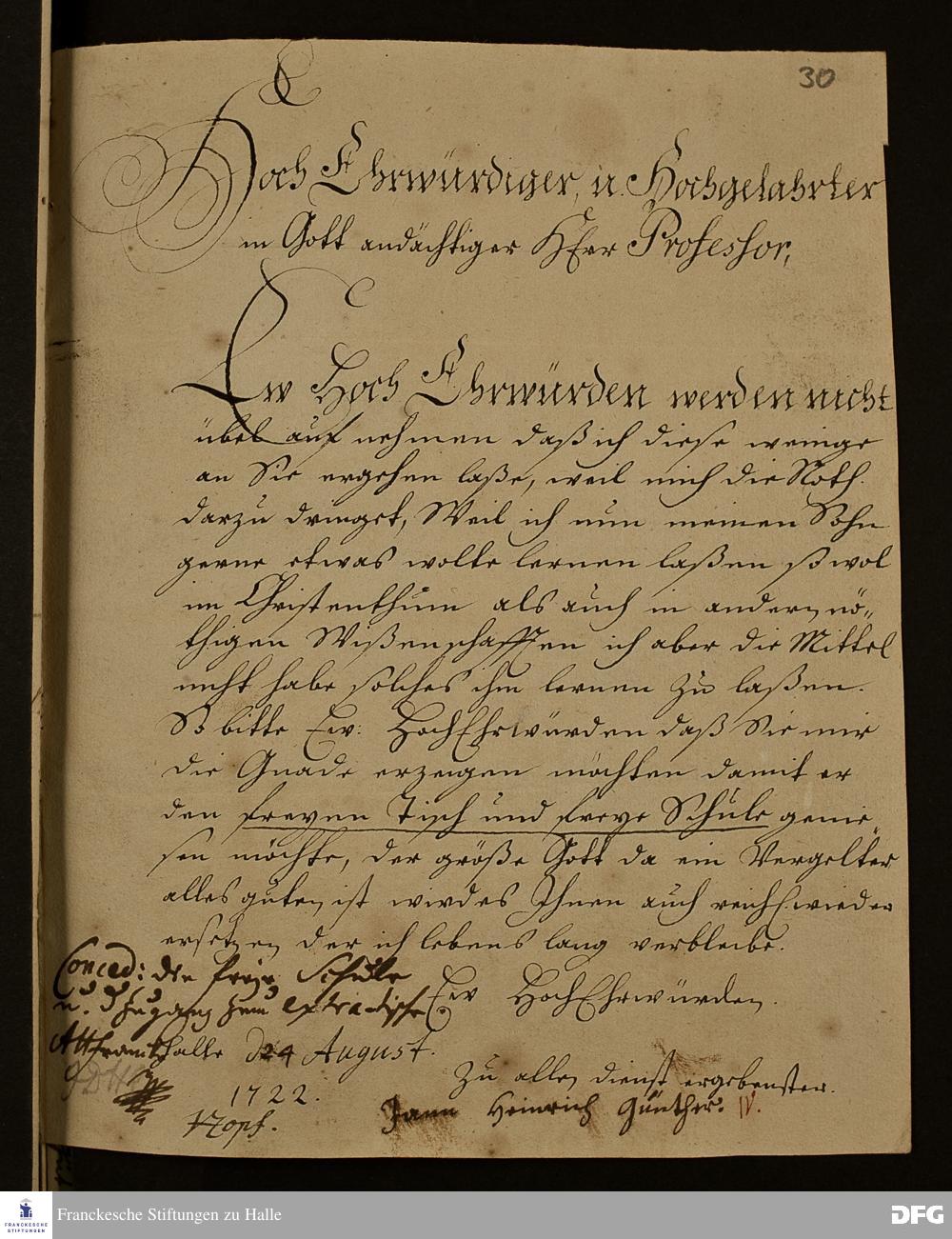Brief von Jann Heinrich Günther an August Hermann Francke.