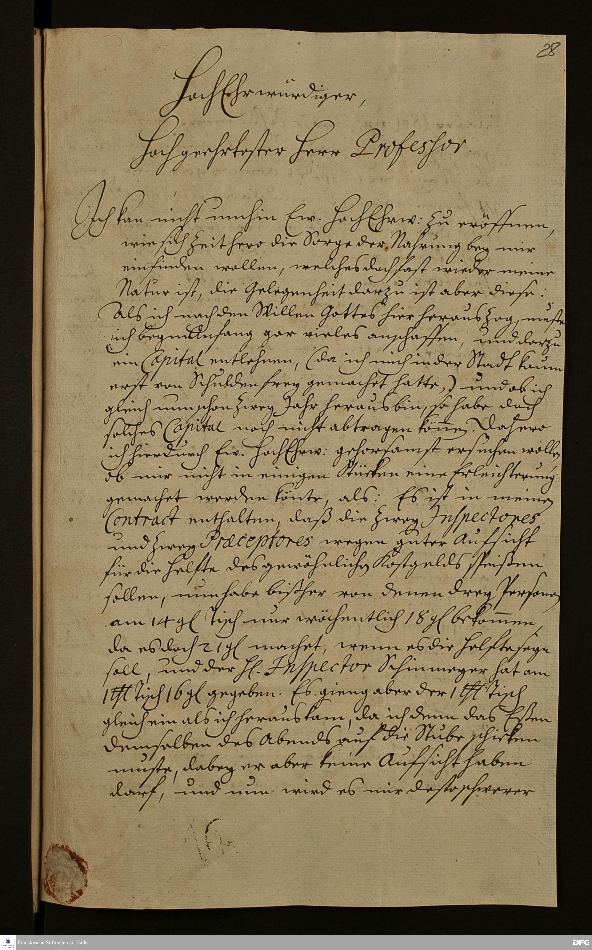 Brief von Peter Kretzschmer an August Hermann Francke.