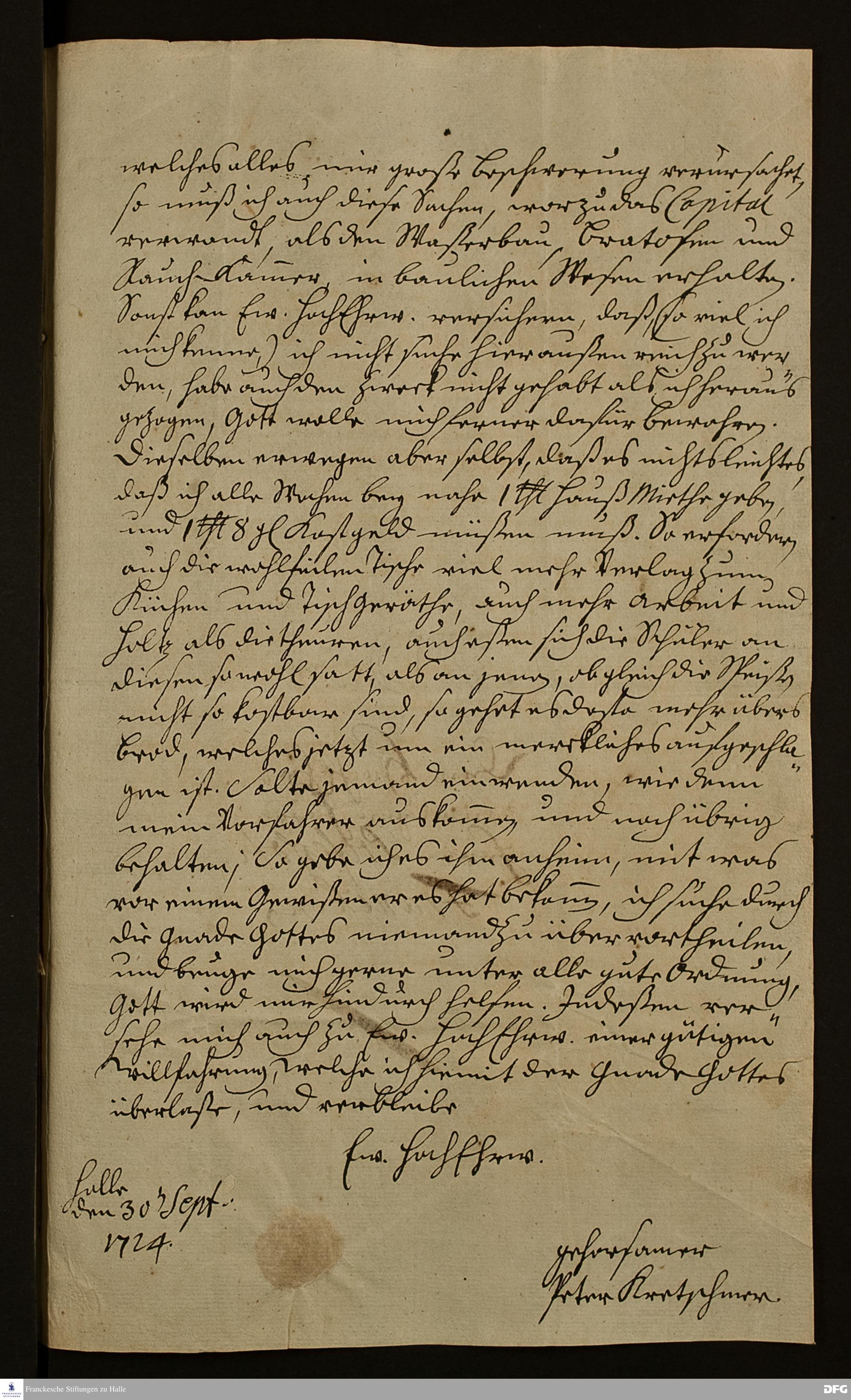 Brief von Peter Kretzschmer an August Hermann Francke.