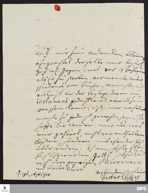 Brief von Just Lüders an August Hermann Francke.