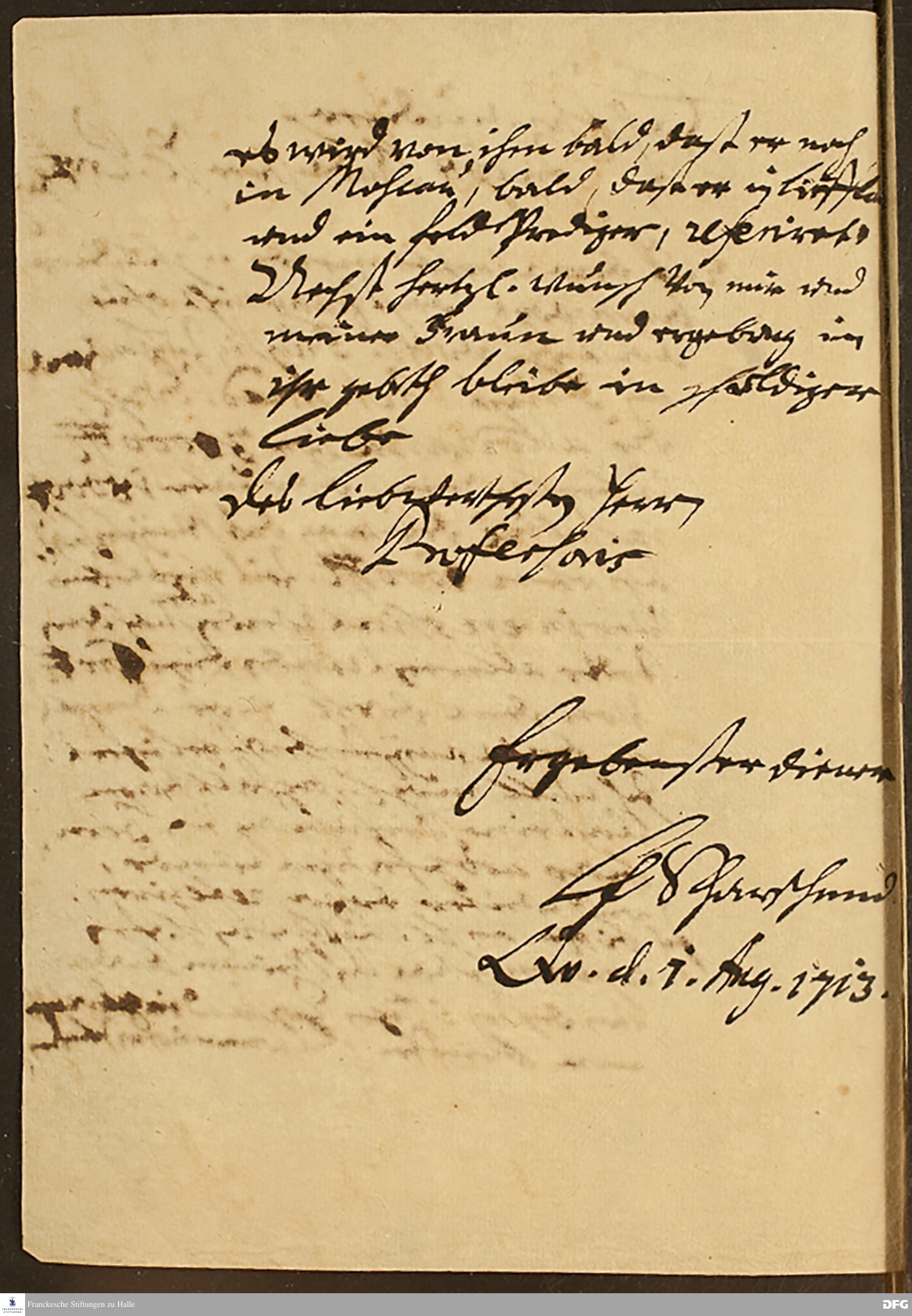 Brief von Christian Friedrich Scharschmidt an August Hermann Francke.