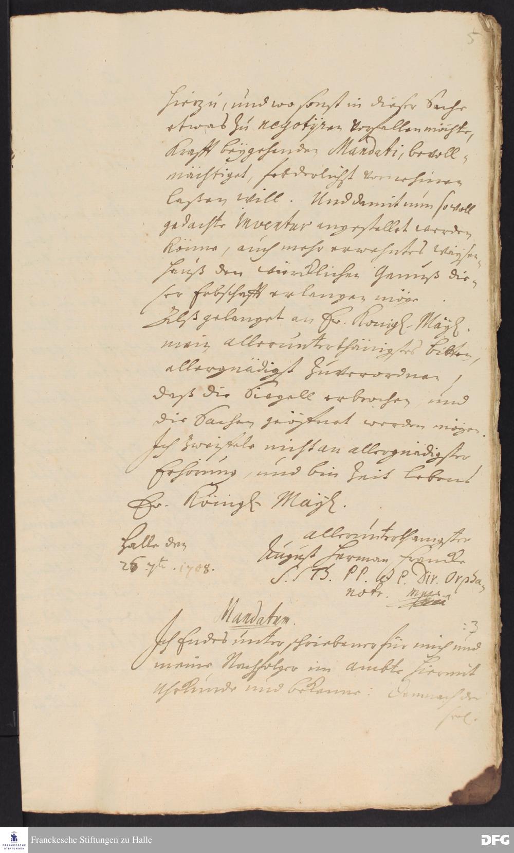 Absichtserklärung von August Hermann Francke an Friedrich Wilhelm I., König in Preußen.