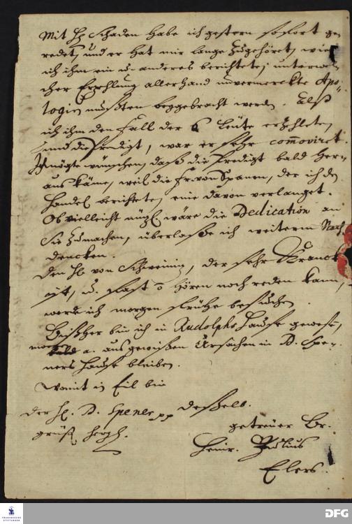 Brief von Heinrich Julius Elers an August Hermann Francke.