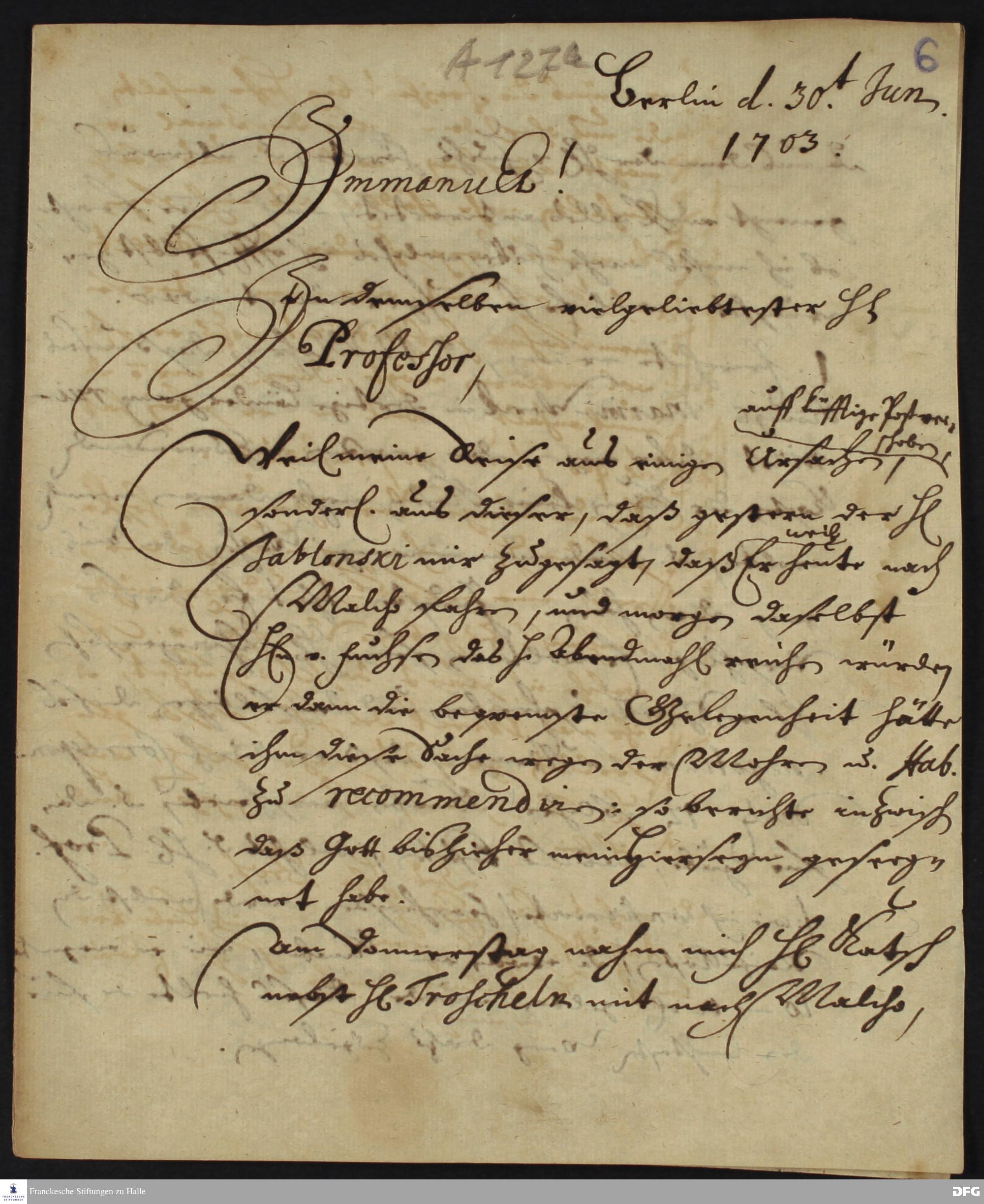 Brief von Heinrich Julius Elers an August Hermann Francke.