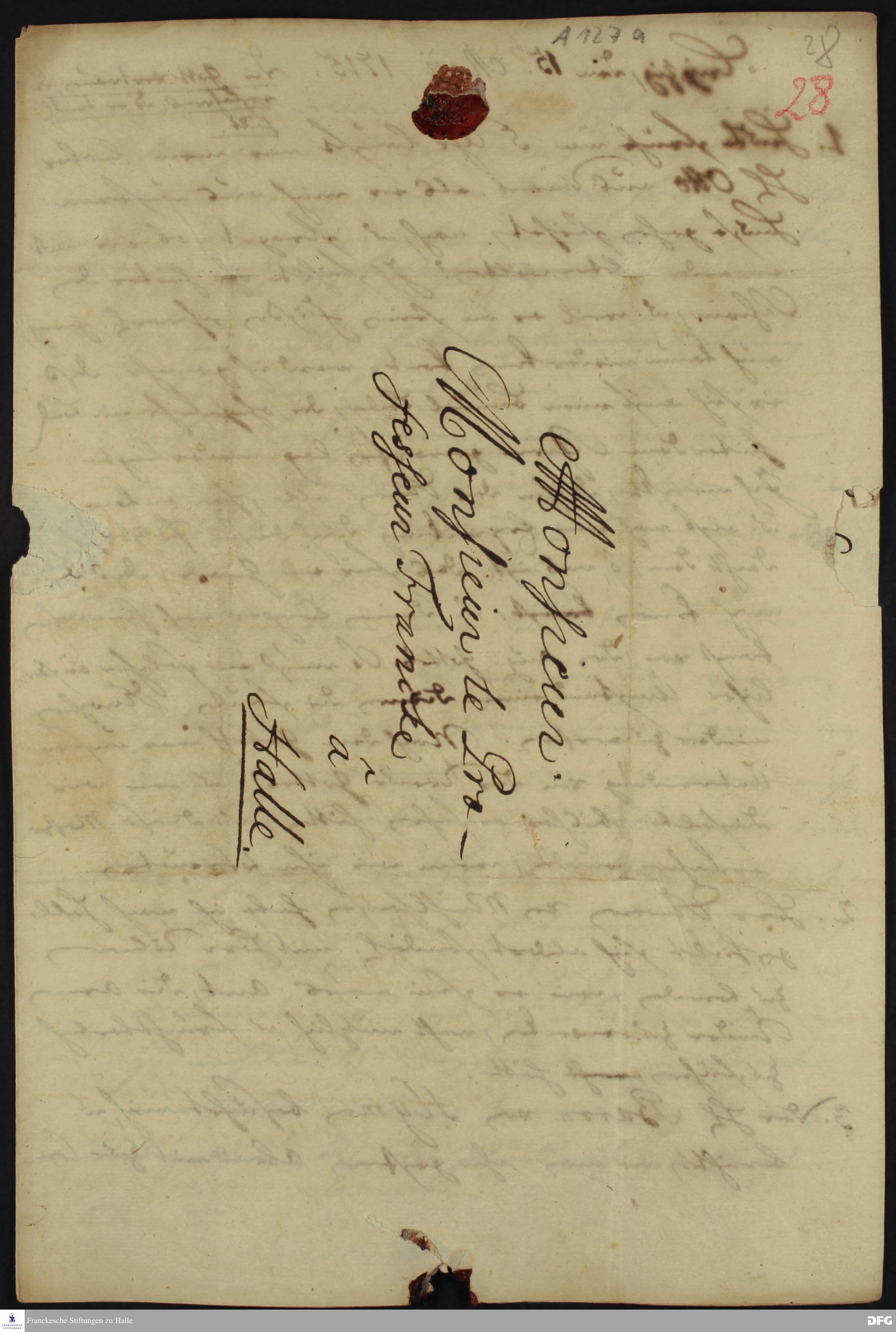 Brief von Heinrich Julius Elers an August Hermann Francke.