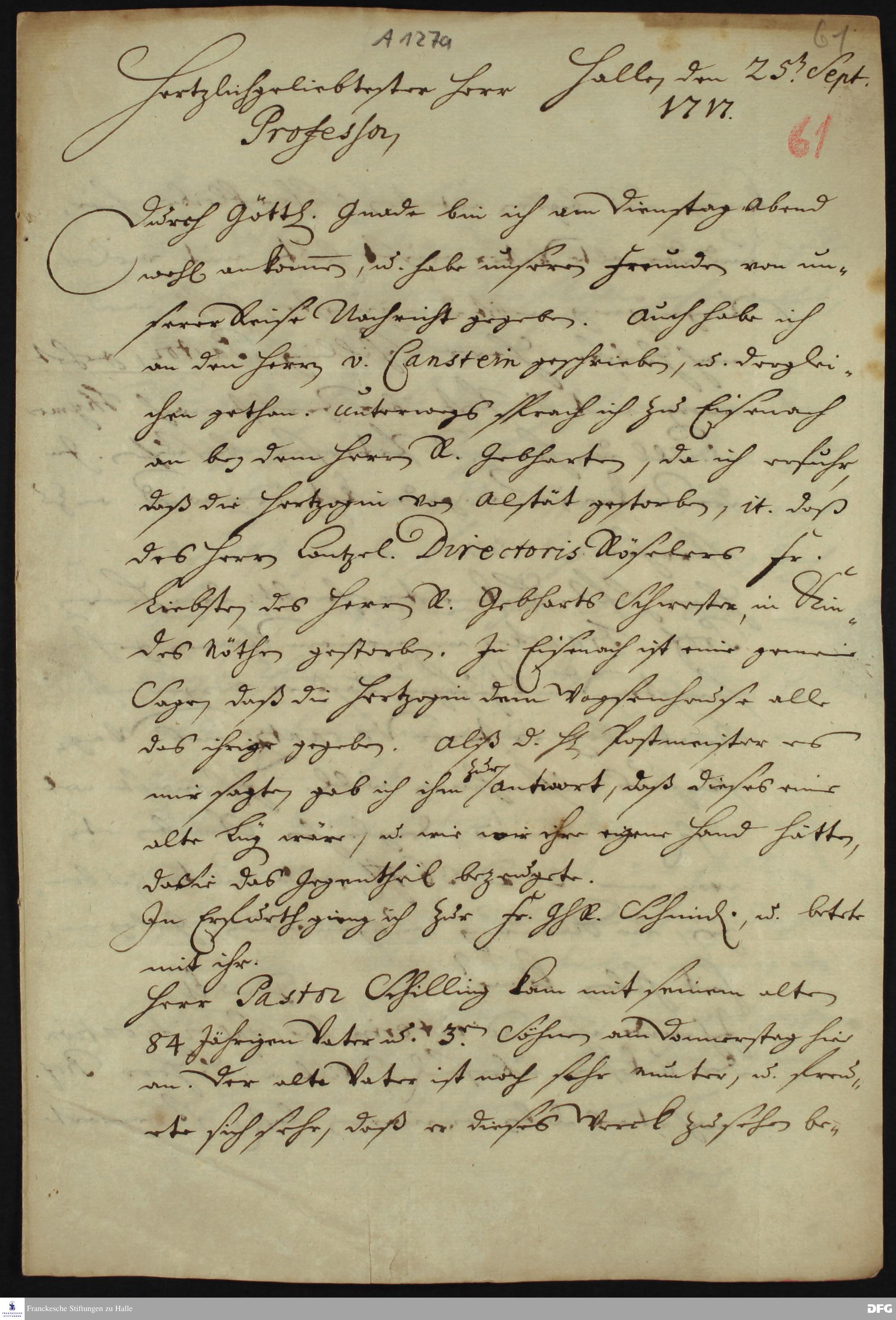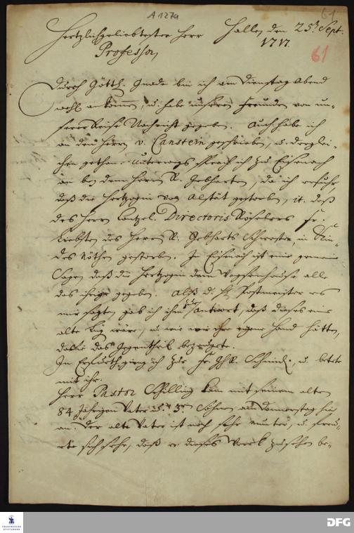 Brief von Heinrich Julius Elers an August Hermann Francke.