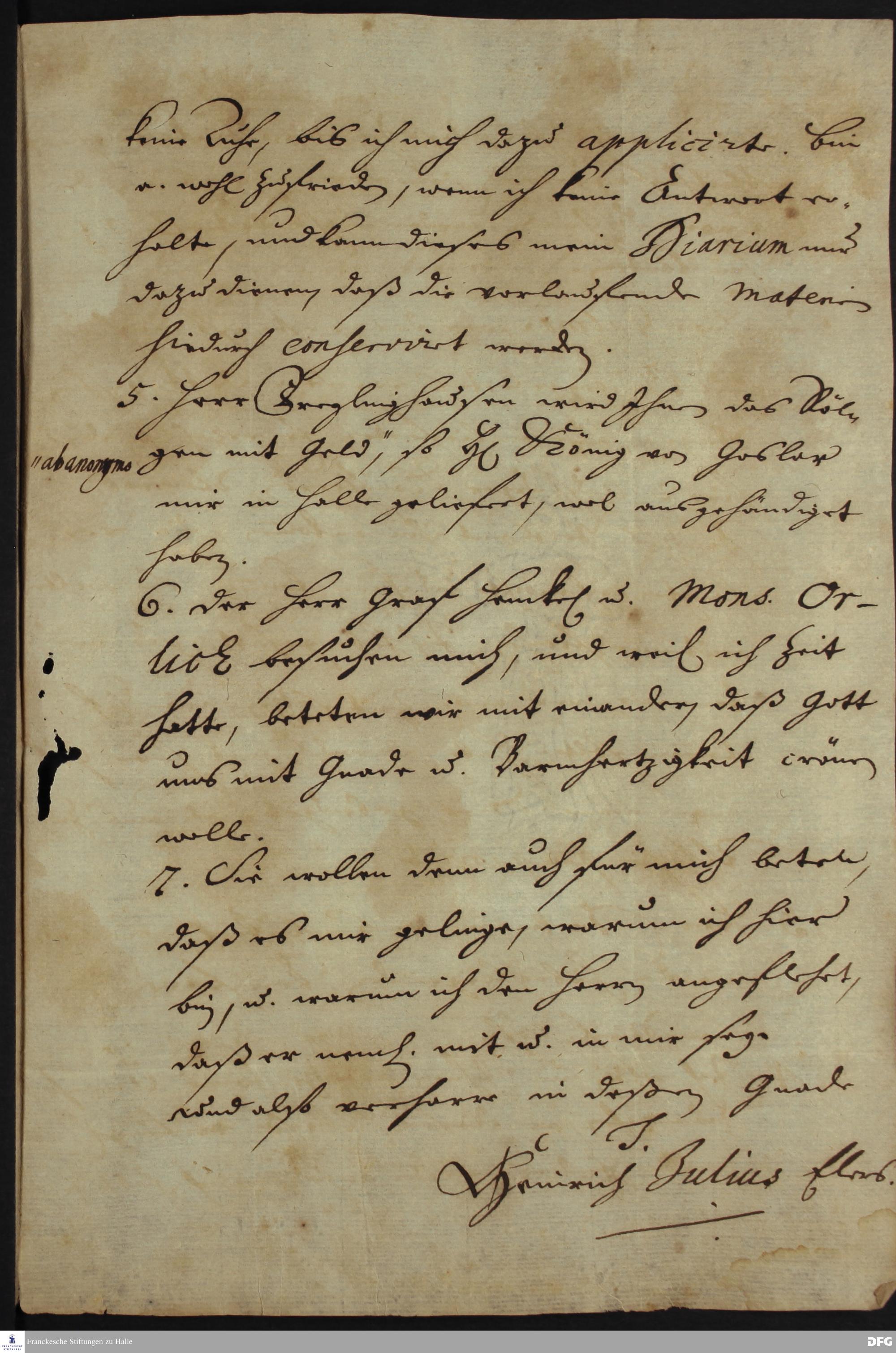 Brief von Heinrich Julius Elers an August Hermann Francke.