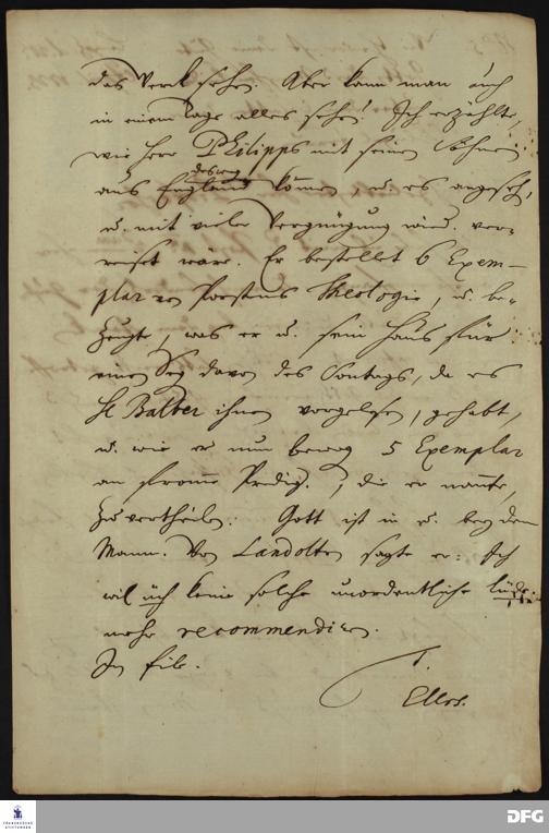 Brief von Heinrich Julius Elers an August Hermann Francke.