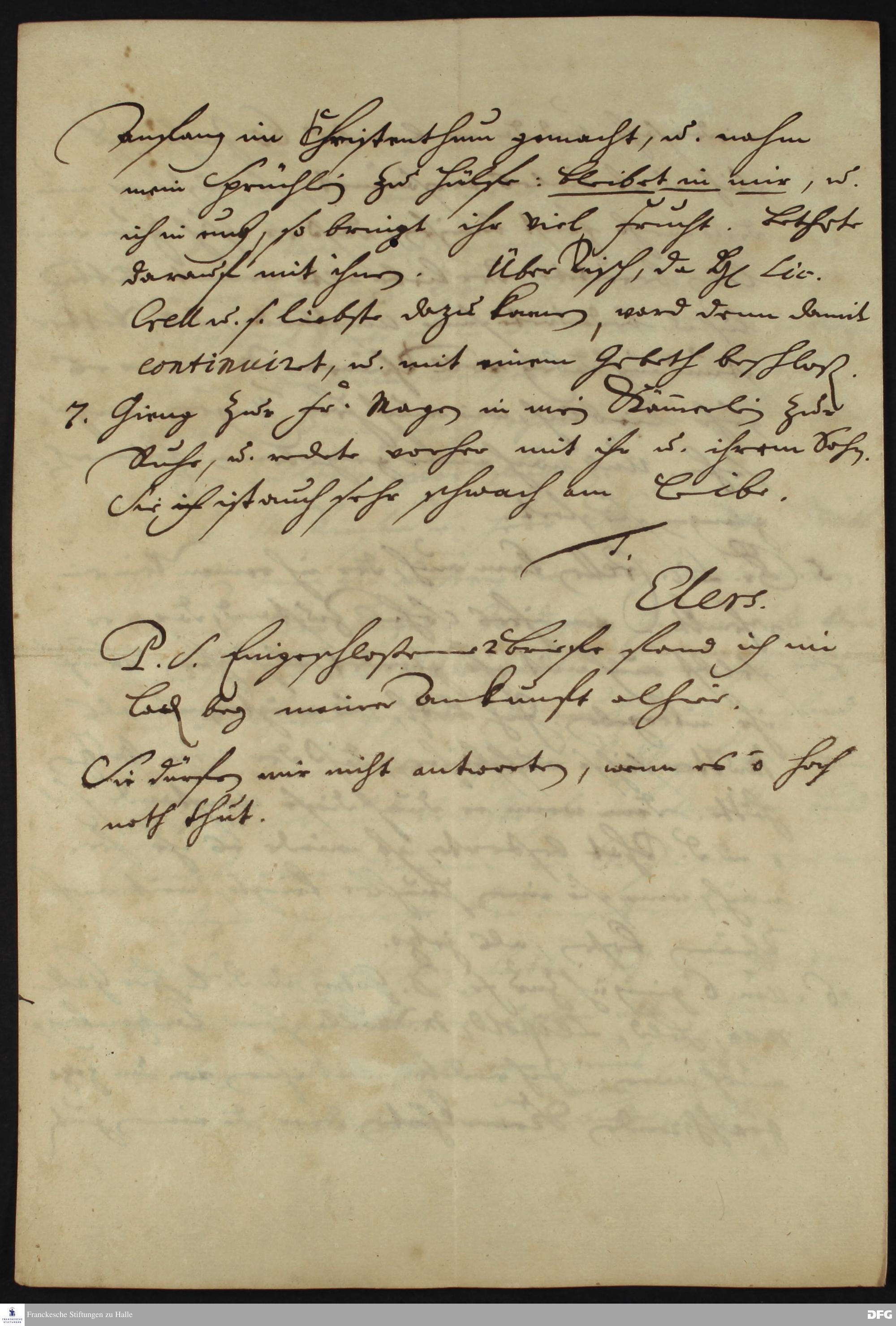 Brief von Heinrich Julius Elers an August Hermann Francke.