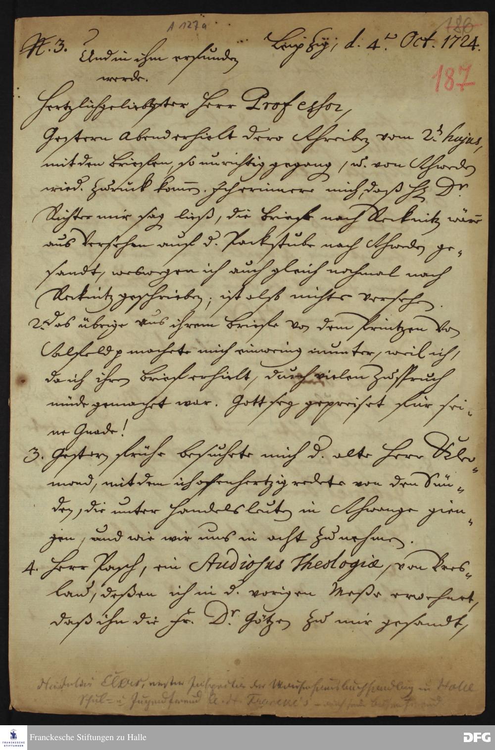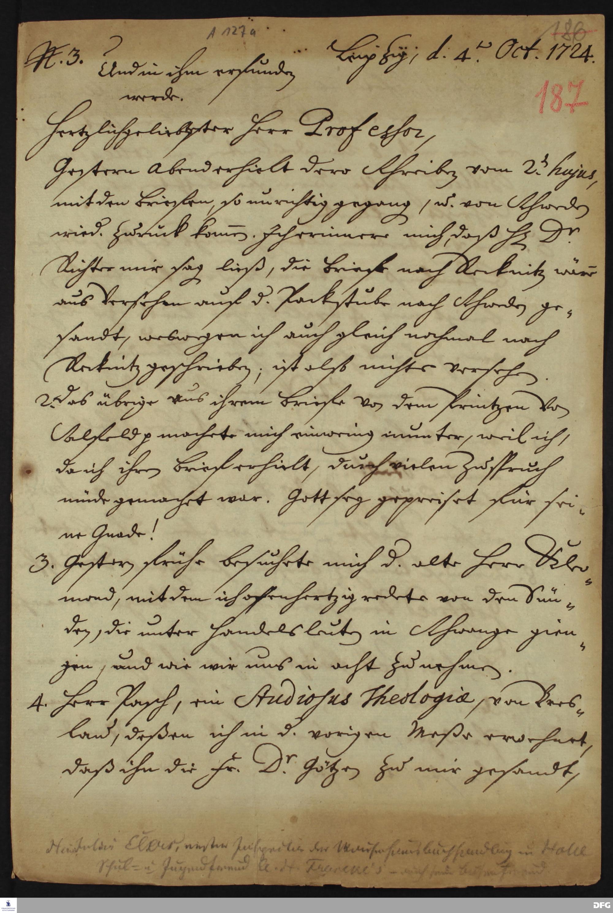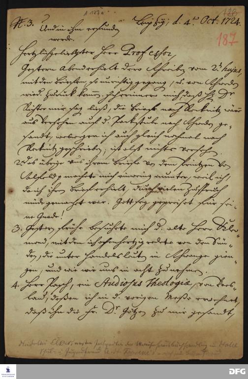Brief von Heinrich Julius Elers an August Hermann Francke.