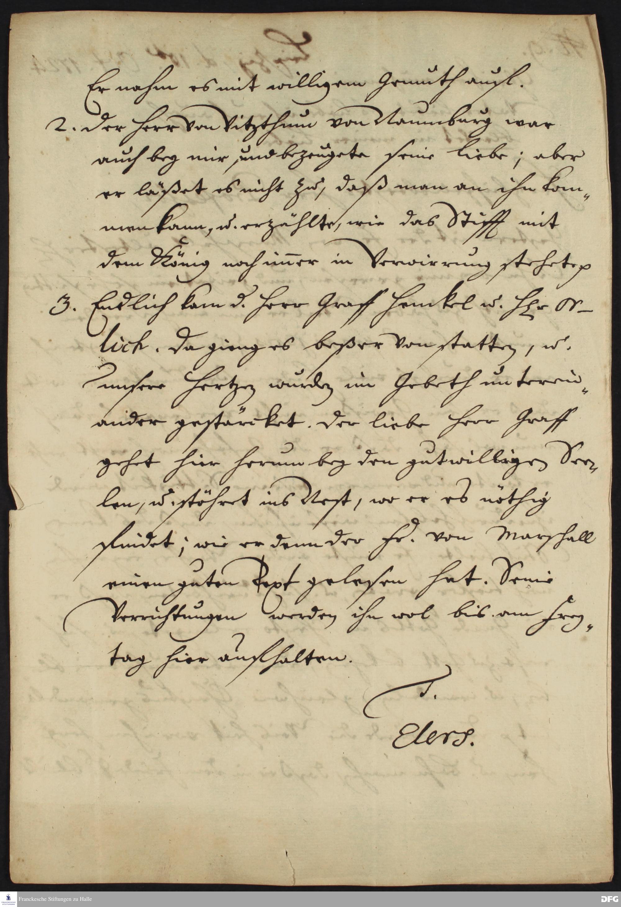 Brief von Heinrich Julius Elers an August Hermann Francke.