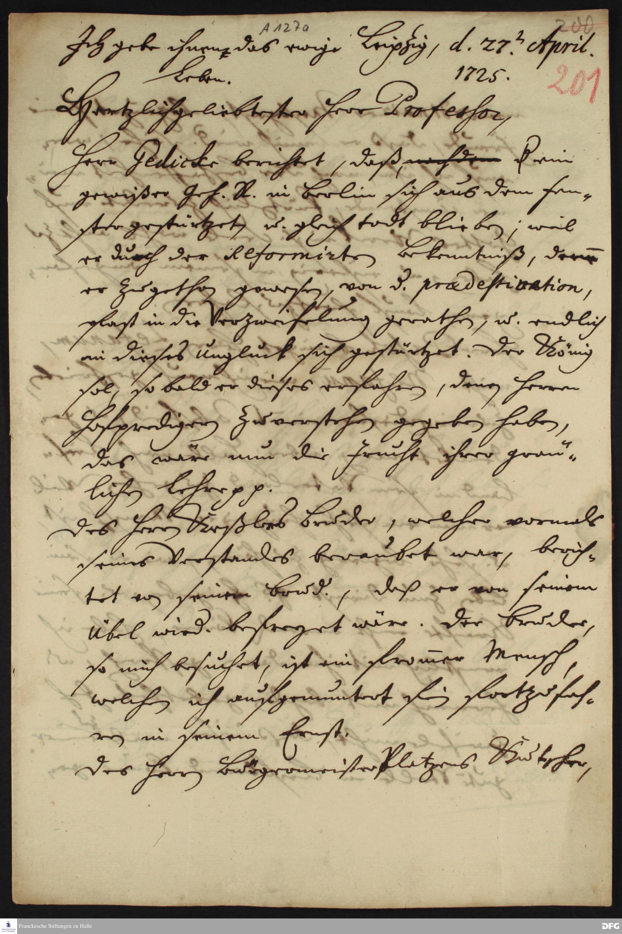 Brief von Heinrich Julius Elers an August Hermann Francke.