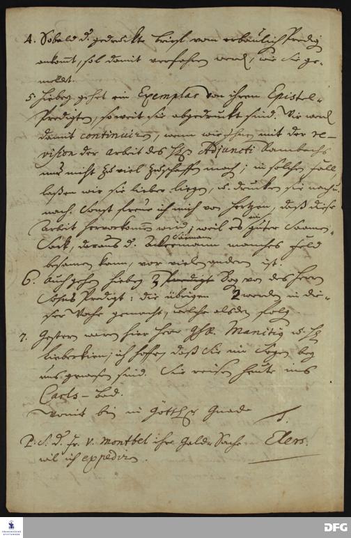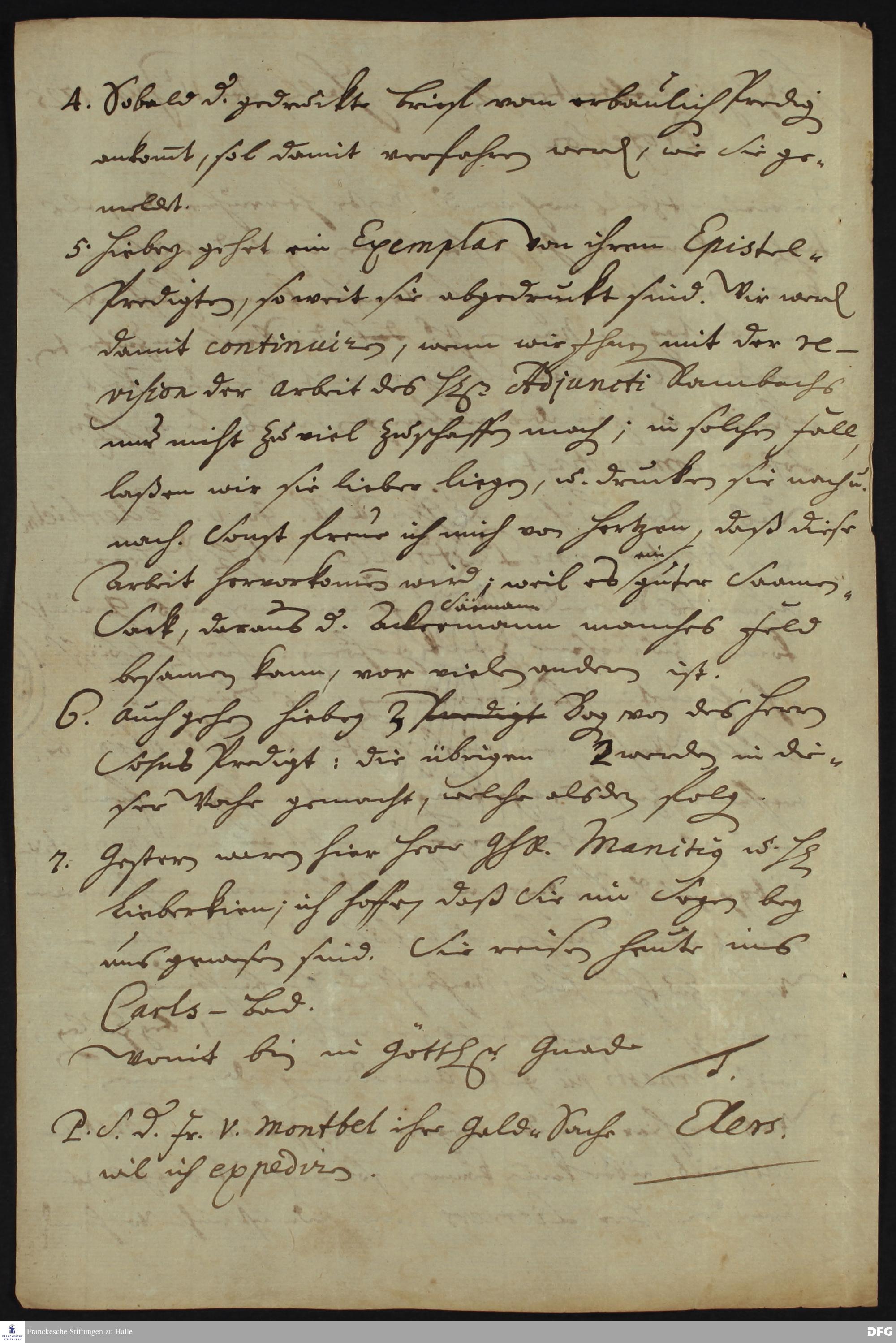 Brief von Heinrich Julius Elers an August Hermann Francke.