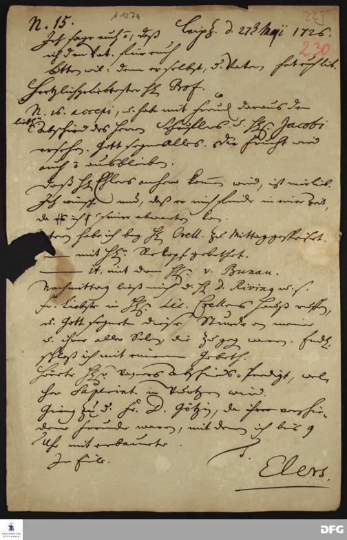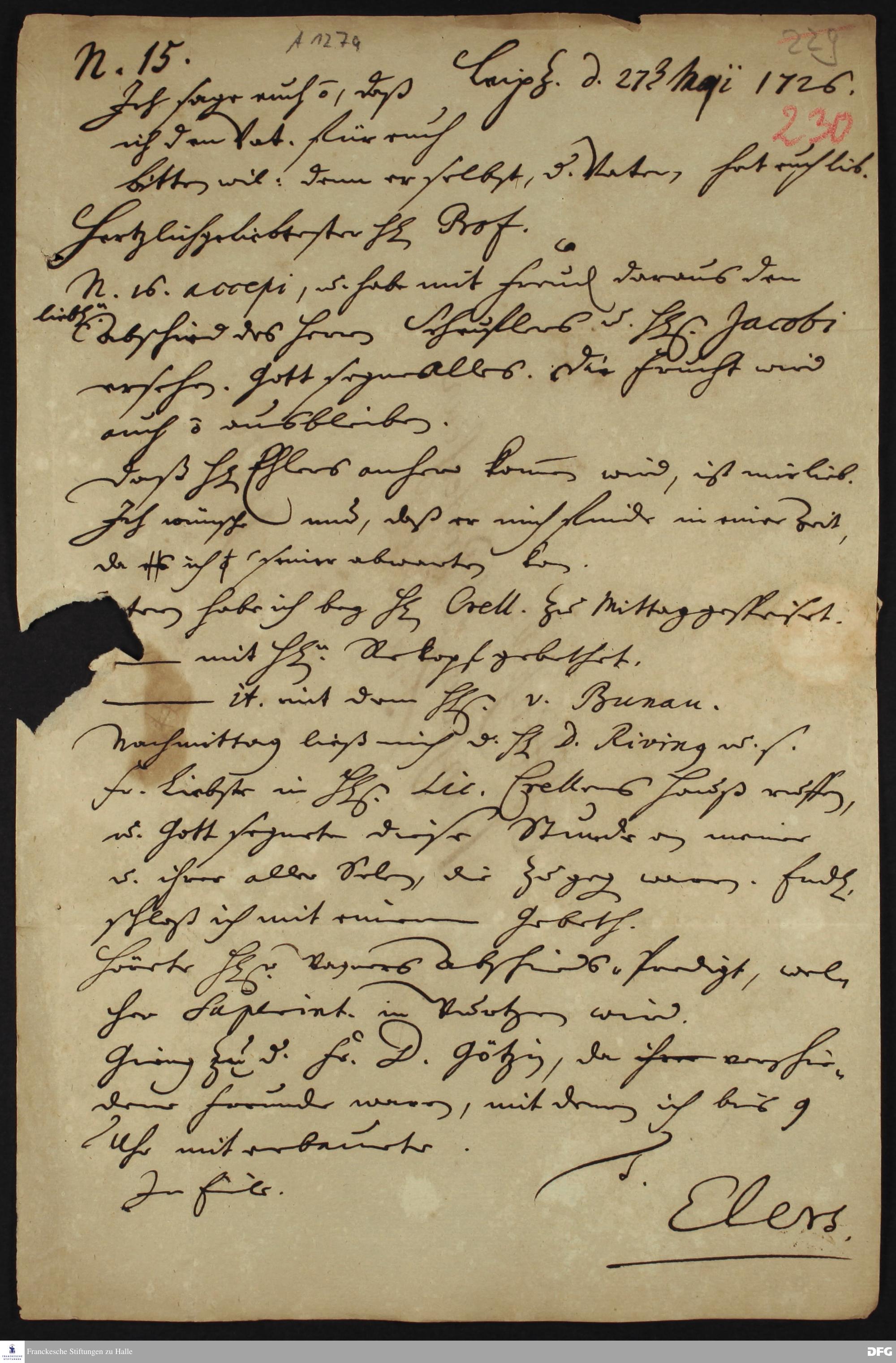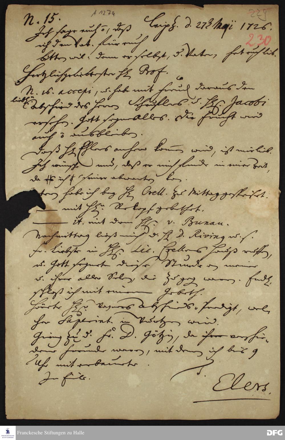 Brief von Heinrich Julius Elers an August Hermann Francke.