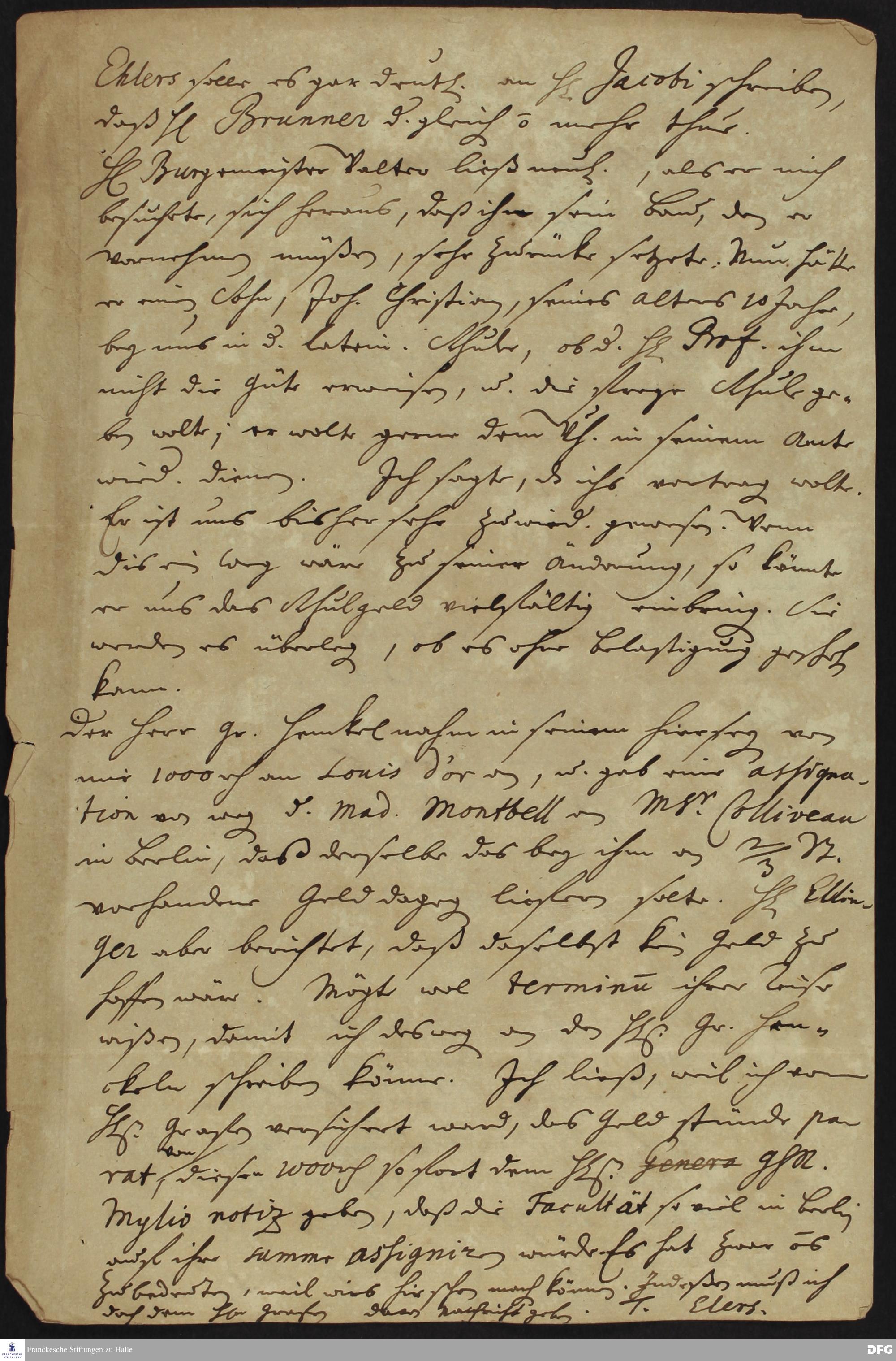 Brief von Heinrich Julius Elers an August Hermann Francke.