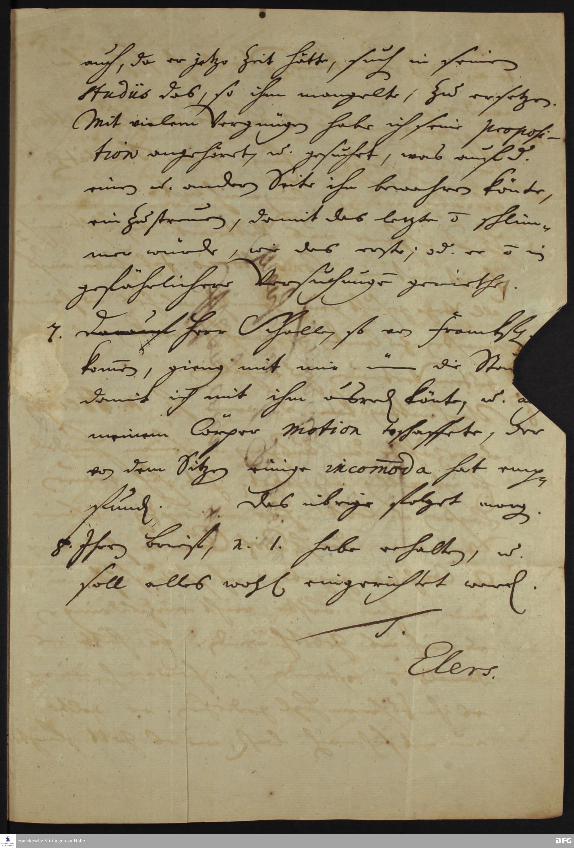 Brief von Heinrich Julius Elers an August Hermann Francke.