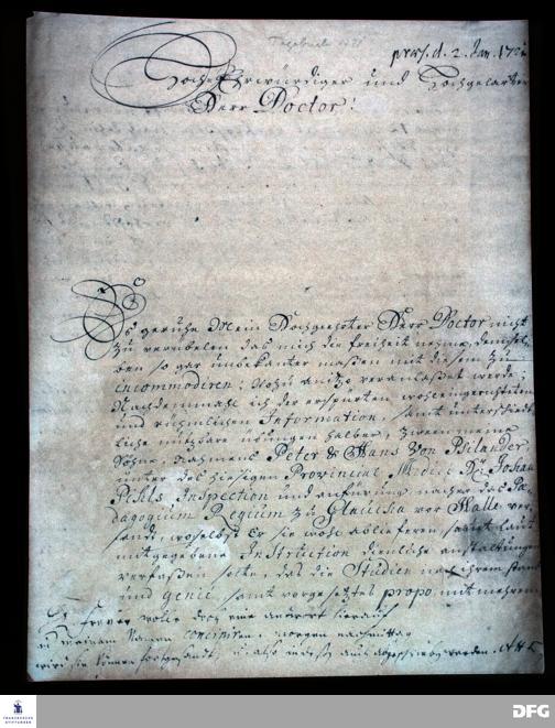 Brief von Gustaff v. Psilander an August Hermann Francke.