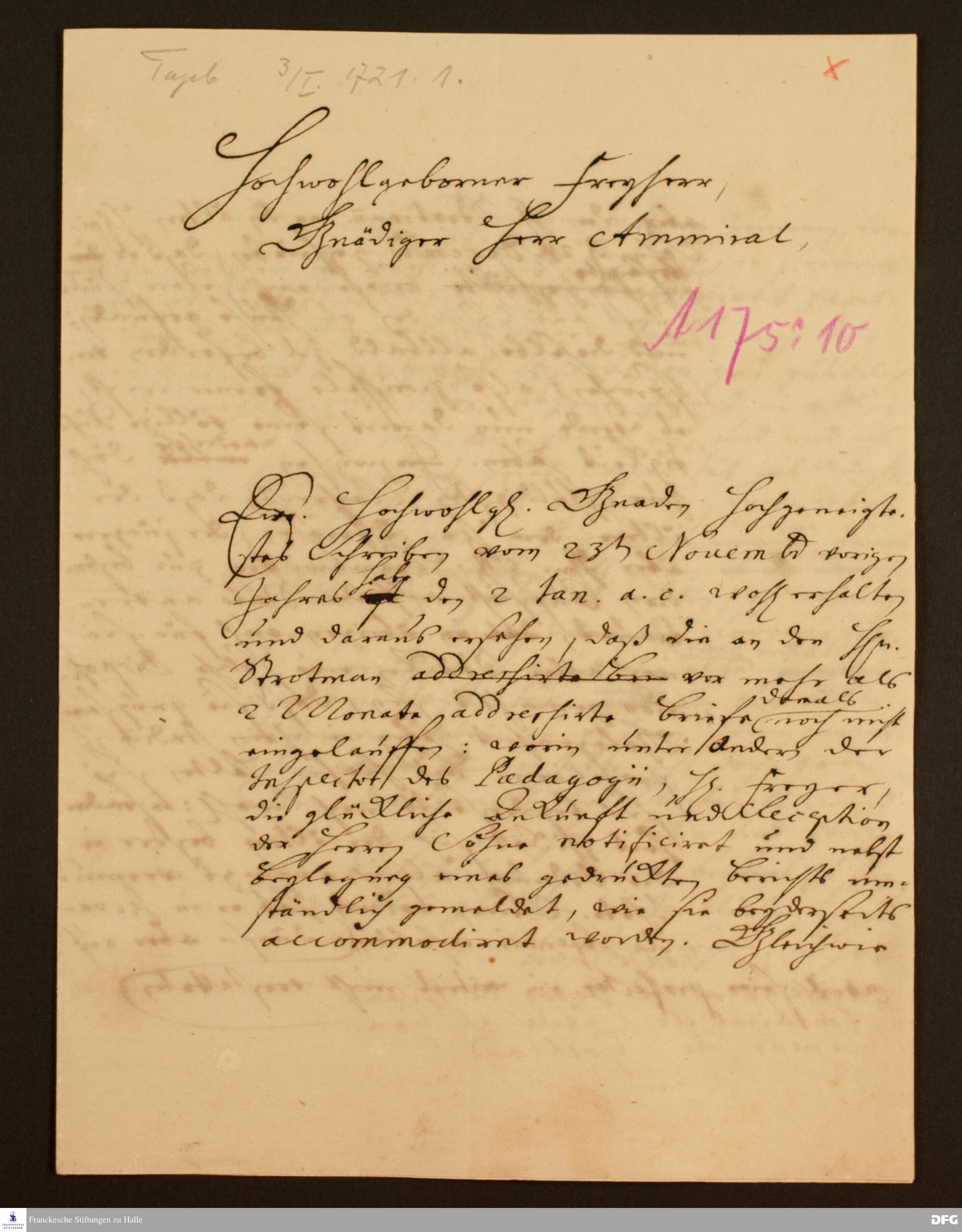 Brief von August Hermann Francke an Gustaff von Psilander.