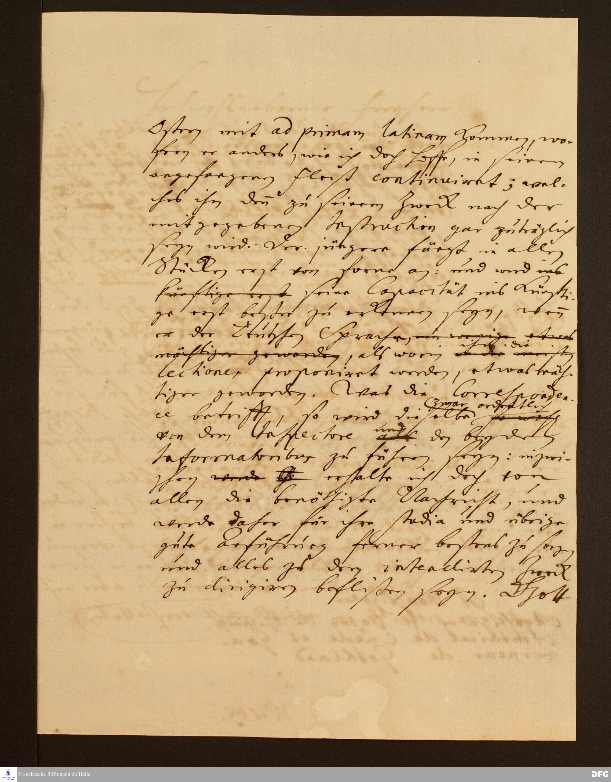 Brief von August Hermann Francke an Gustaff von Psilander.