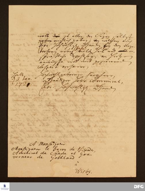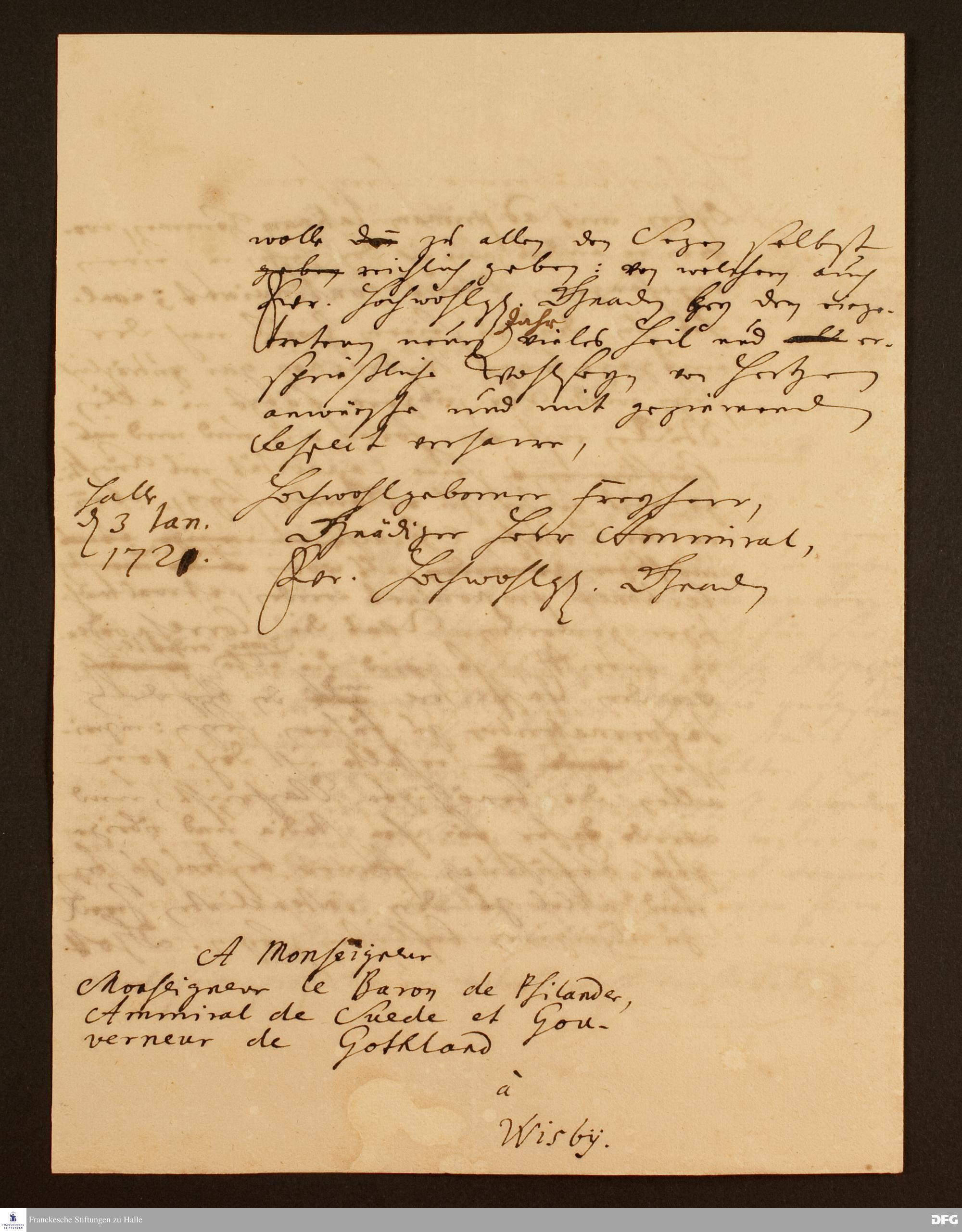 Brief von August Hermann Francke an Gustaff von Psilander.