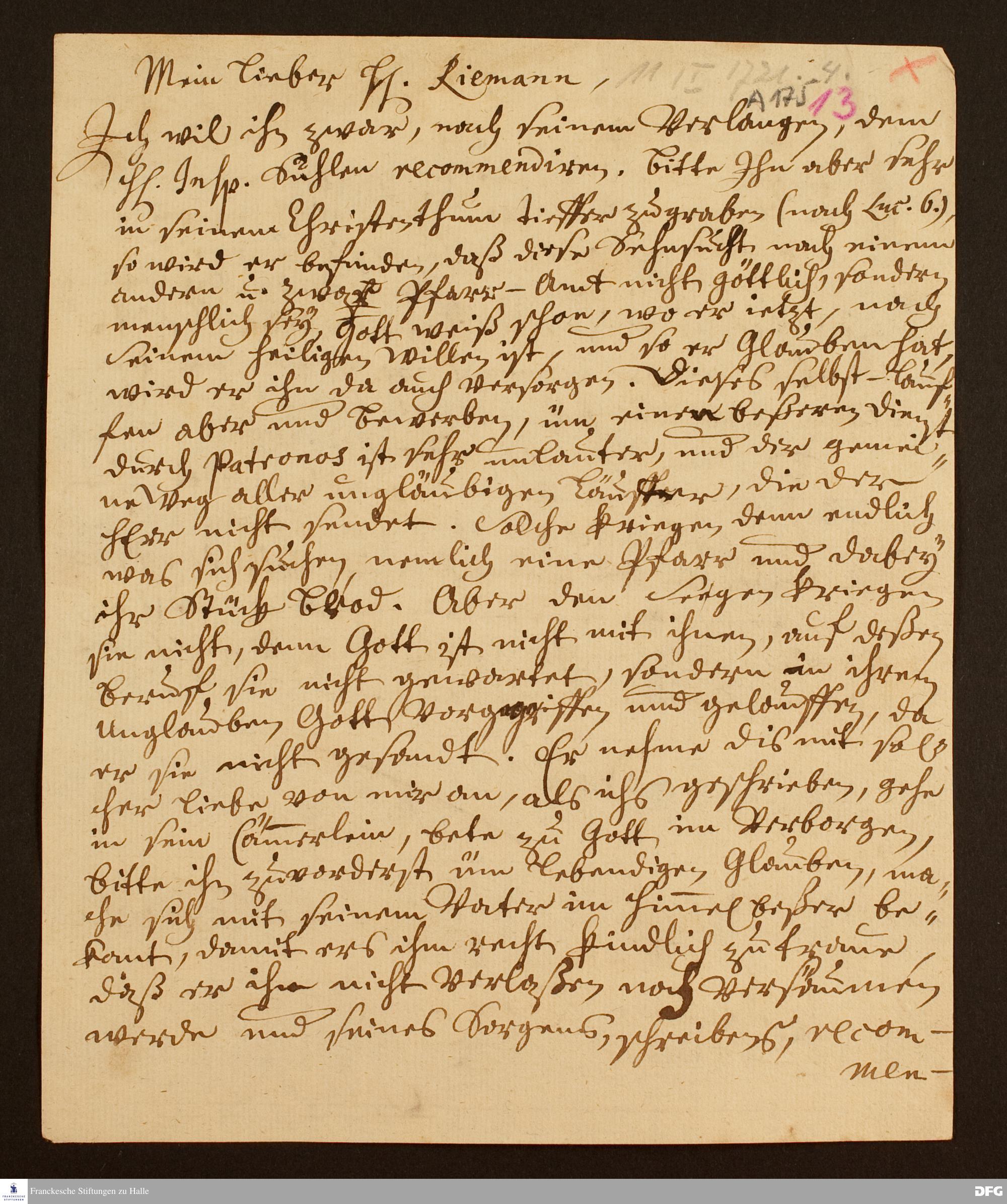 Brief von August Hermann Francke an Michael Andreas Riemann.