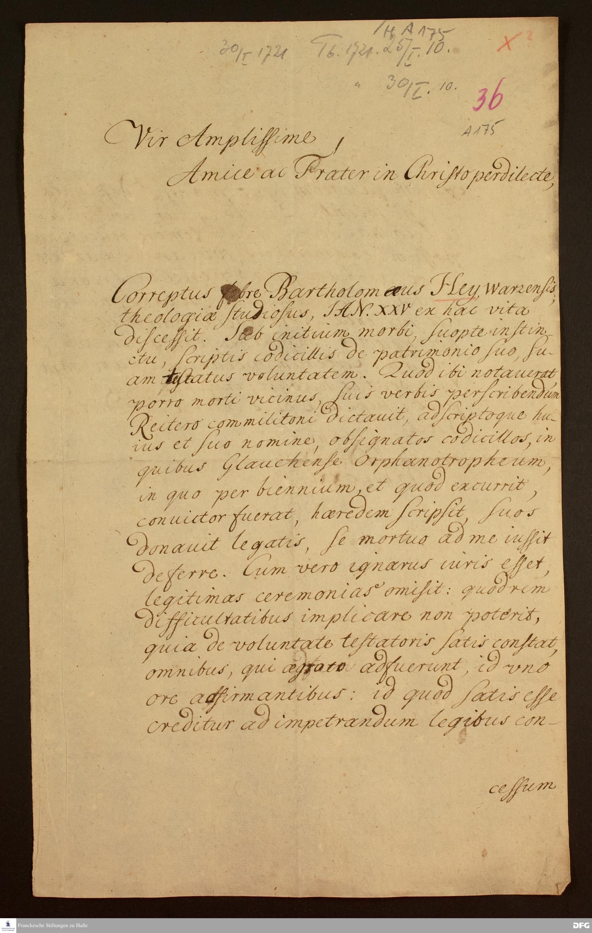 Brief von August Hermann Francke an Gottfried Vockerodt.